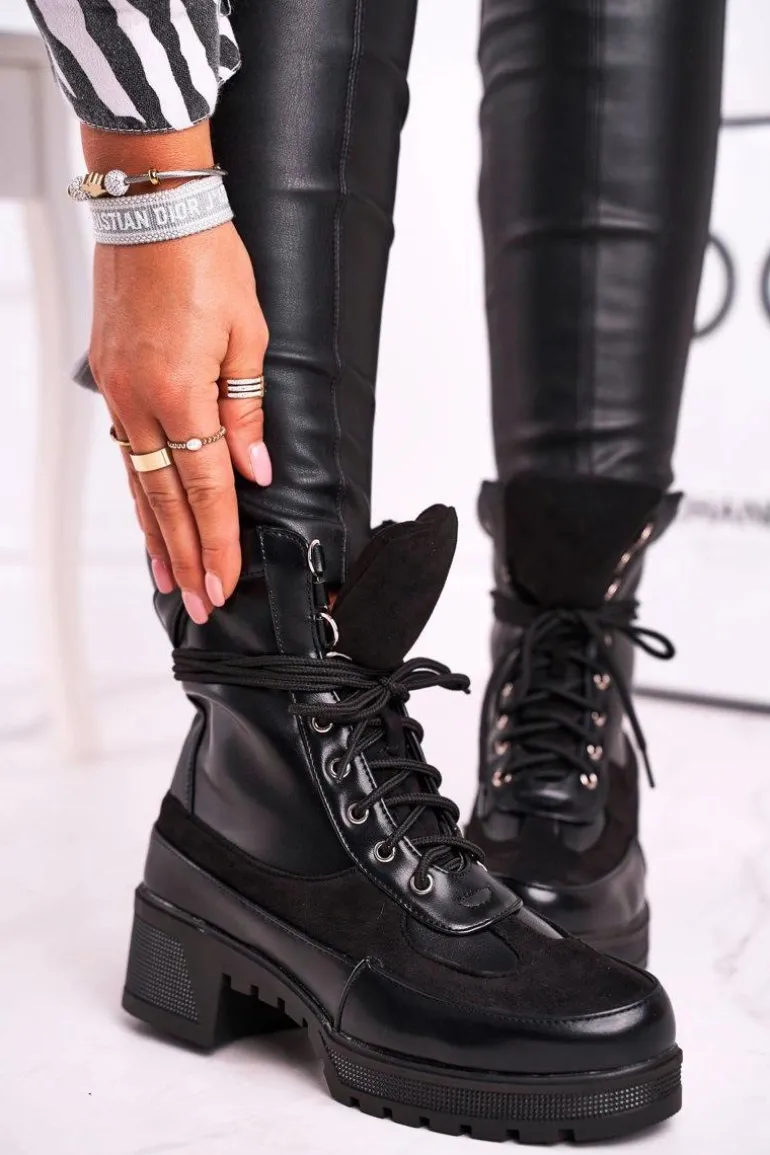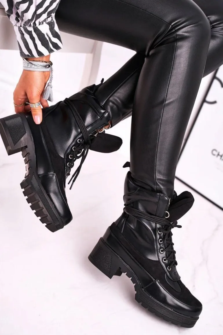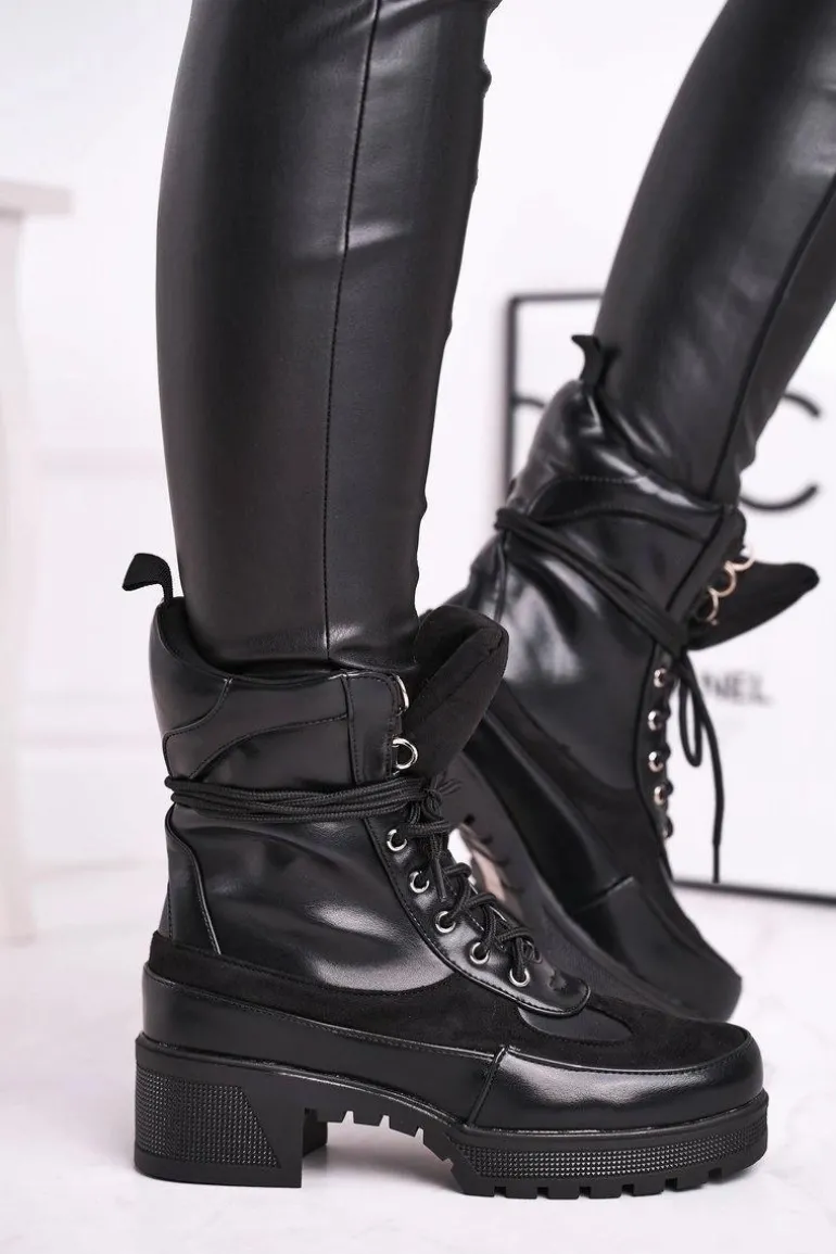 Botki Damskie Wysokie Sznurowane Czarne Ridley