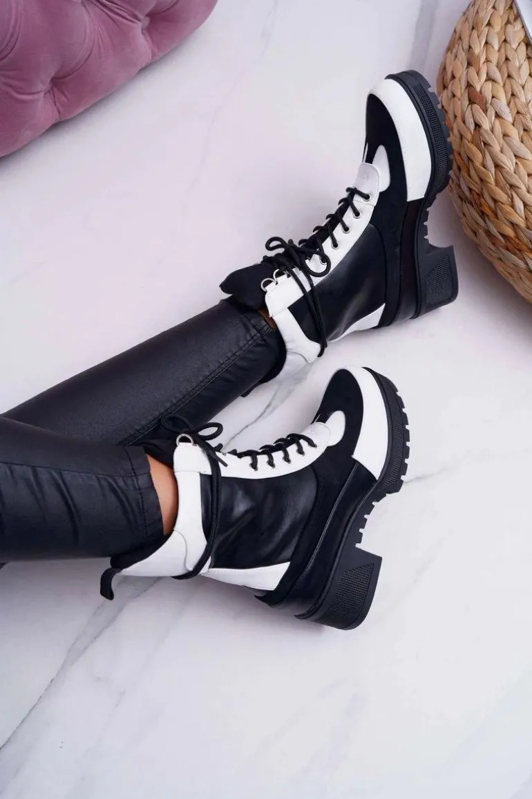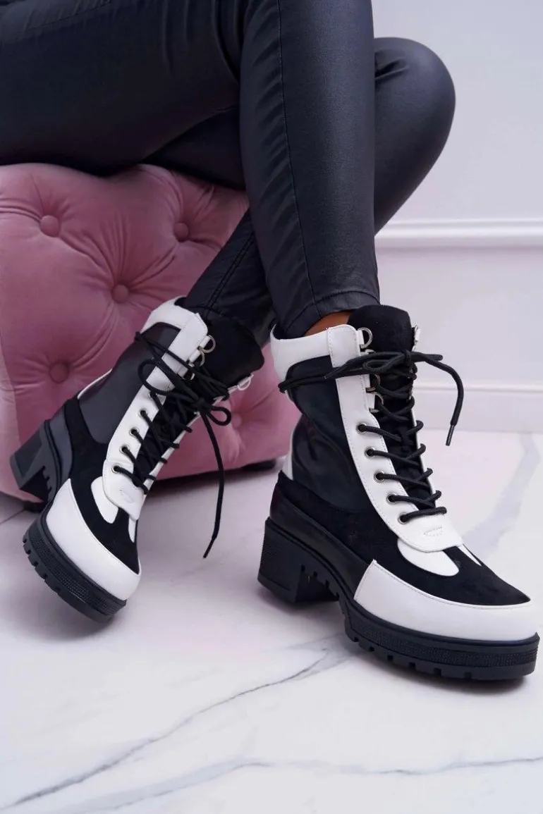 Wspaniałe botki z wysoką cholewką. Wnętrze delikatnie ocieplone kocem obuwniczym, które zapewni nam komfort w każdej sytuacji. Solidne sznurowanie oraz gruba podeszwa. Przy wyborze rozmiaru prosimy sugerować się tabelą rozmiarów, która dostępna jest po najechaniu bądź kliknięciu w dany rozmiar.