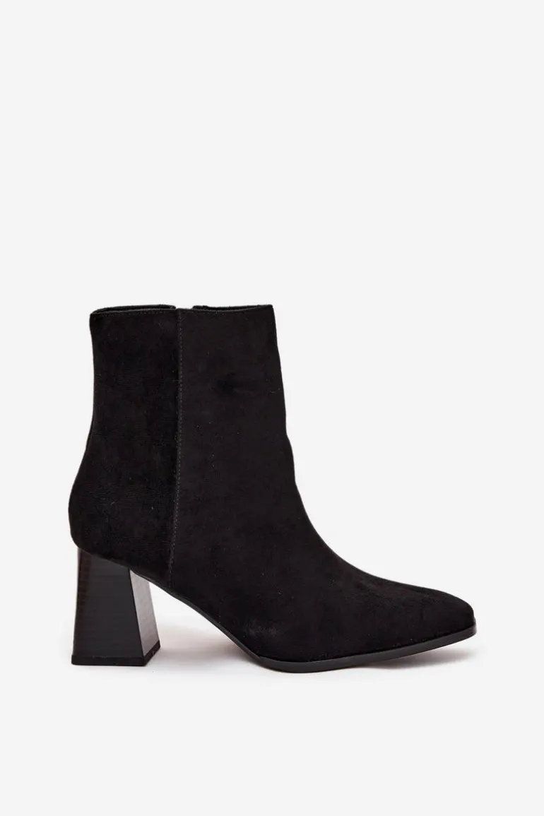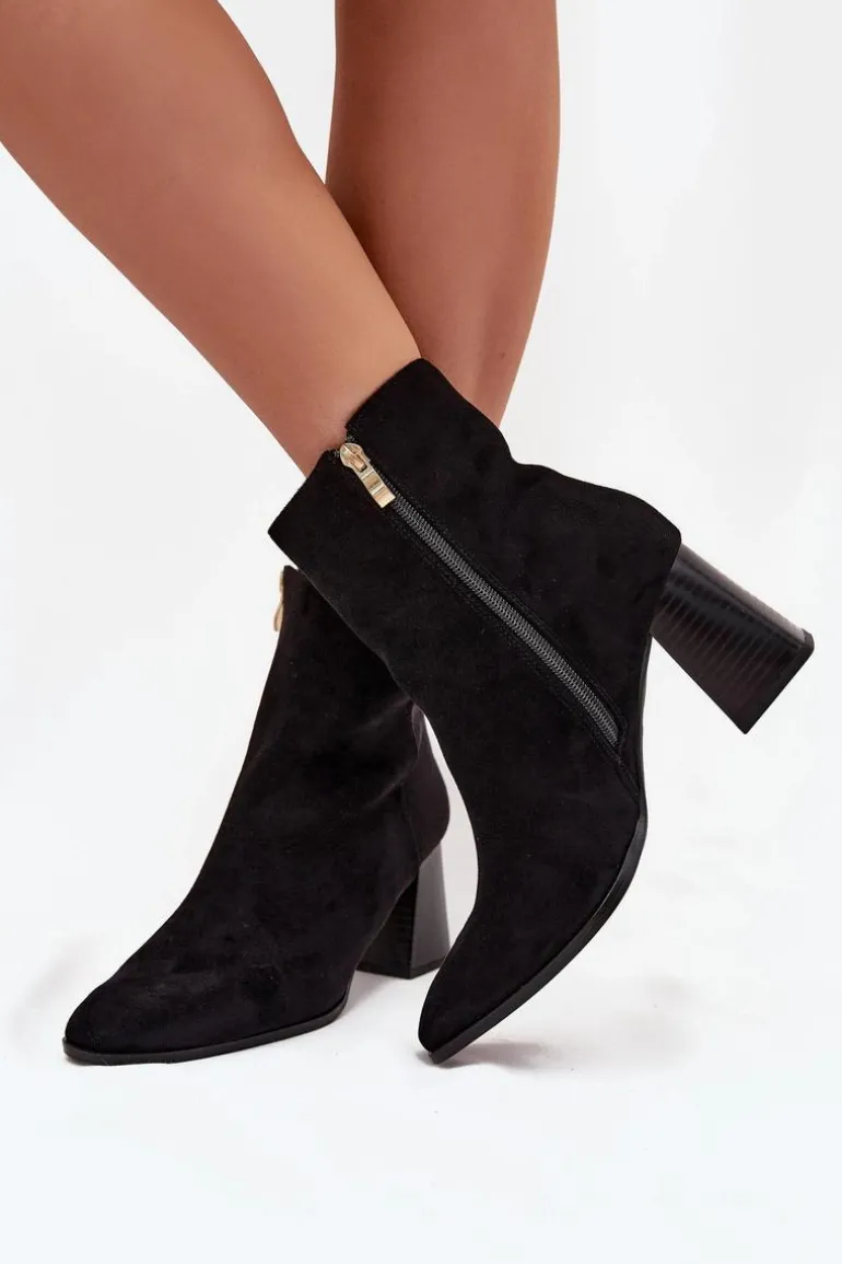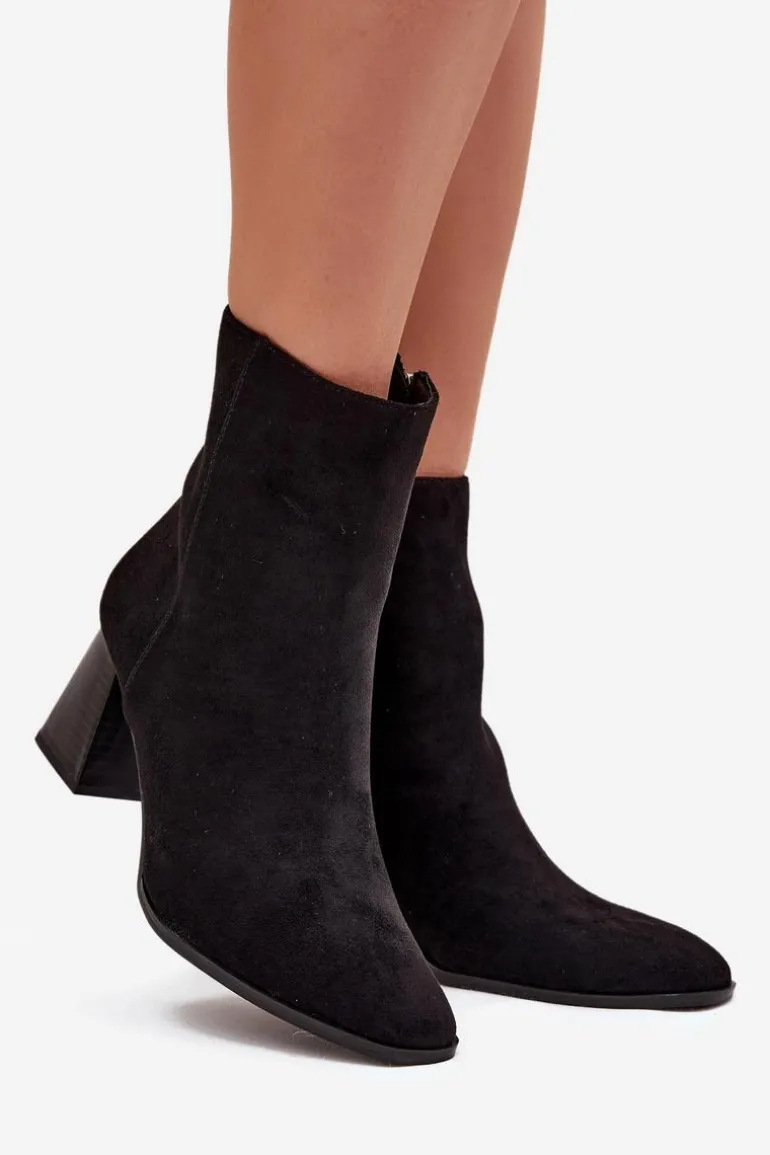 Botki damskie z eko zamszu, osadzone na obcasie w formie słupka, to elegancka propozycja na chłodniejsze dni. Zapinane na zamek, zapewniają łatwość zakładania i idealne dopasowanie do stopy. Noski są delikatnie zaokrąglone, co dodaje im subtelności i komfortu. Idealne do codziennych stylizacji, świetnie komponują się z sukienkami, spódnicami czy spodniami, łącząc styl z wygodą. Przy wyborze rozmiaru prosimy sugerować się tabelą rozmiarów.