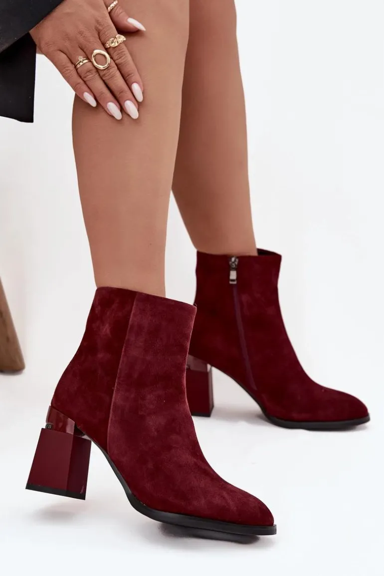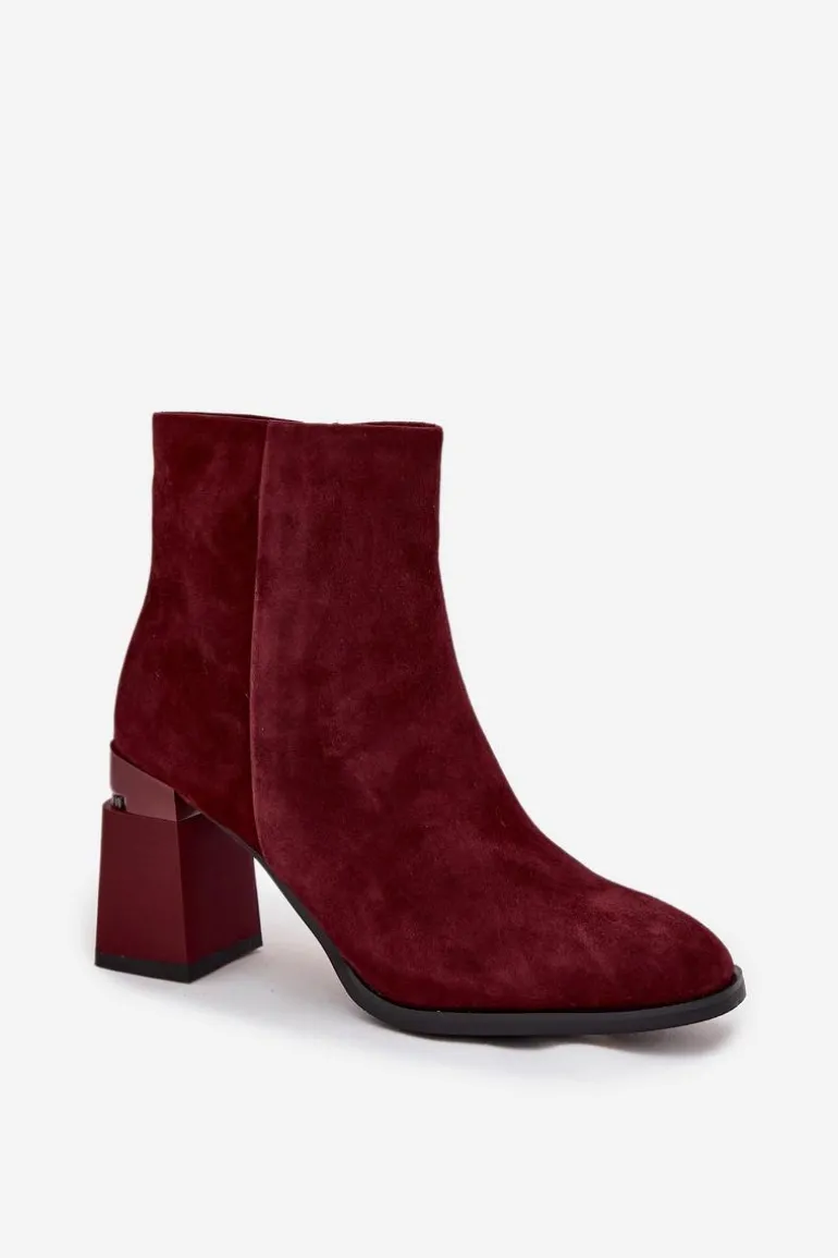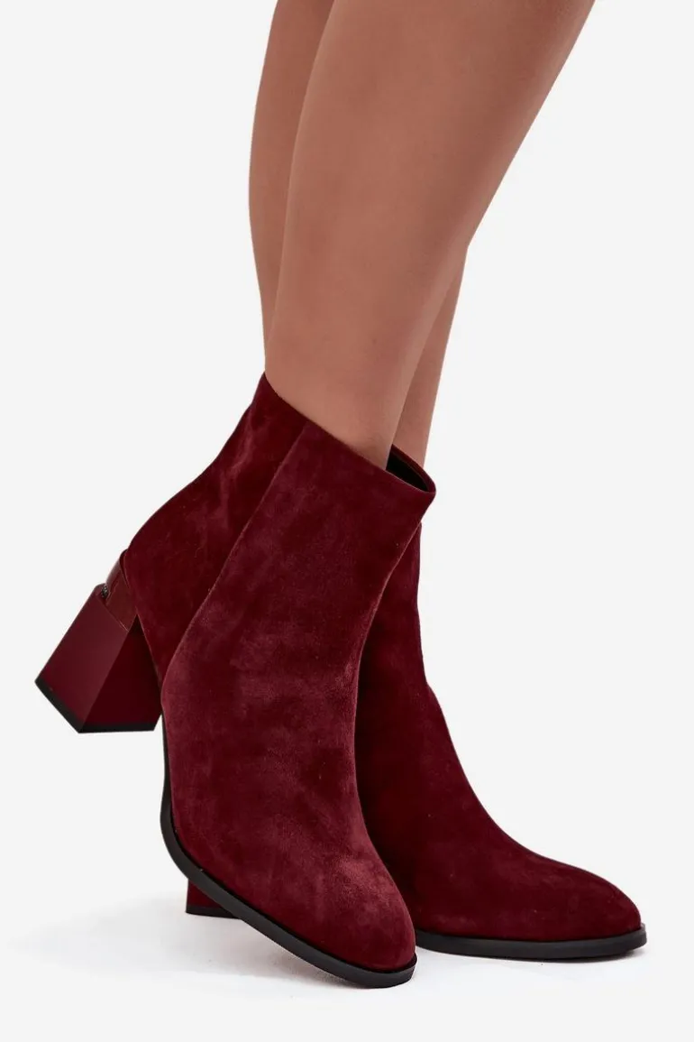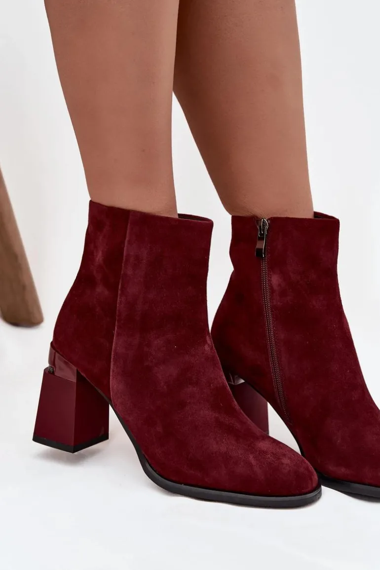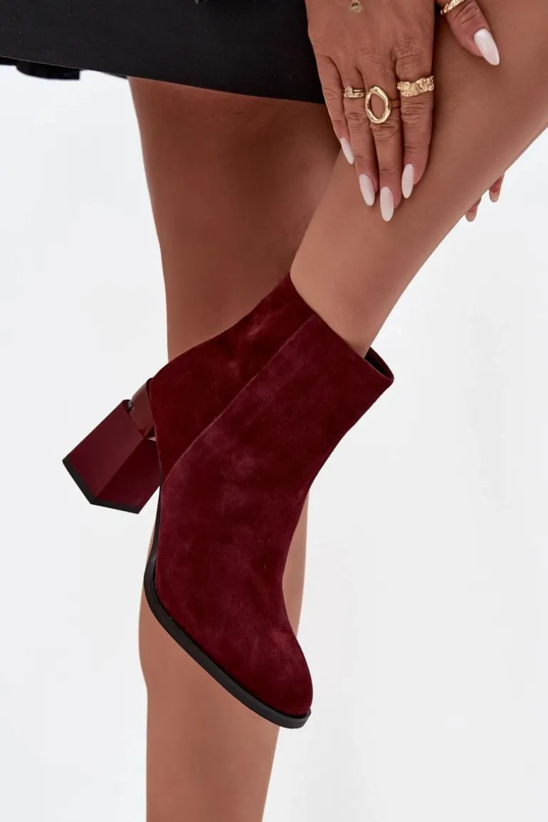 Botki damskie z naturalnego zamszu to propozycja, która łączy klasyczną elegancję z codzienną wygodą. Wykonane z wysokiej jakości materiału, prezentują się niezwykle stylowo. Model osadzony na stabilnym obcasie typu słupek pięknie wysmukla sylwetkę, jednocześnie zapewniając komfort noszenia. Buty posiadają praktyczne zapięcie na zamek, które ułatwia zakładanie i zdejmowanie, a delikatnie zaokrąglone noski podkreślają klasyczny wygląd. Ocieplane wnętrze gwarantuje przyjemne ciepło w chłodniejsze dni, dzięki czemu model świetnie sprawdzi się w okresie jesienno-zimowym. To uniwersalne botki, które idealnie dopełnią zarówno eleganckie stylizacje z sukienką, jak i codzienne zestawy z jeansami czy spódnicą.