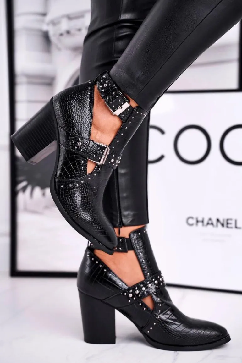 Botki Damskie Z Wycięciami Croco Czarne Aria