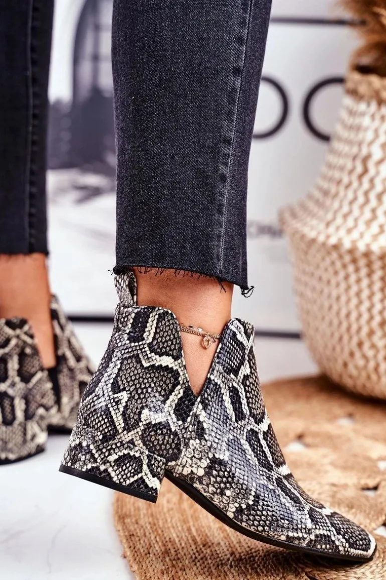 Botki Damskie Z Wycięciami Skórzane Wężowe Visconi 2625804