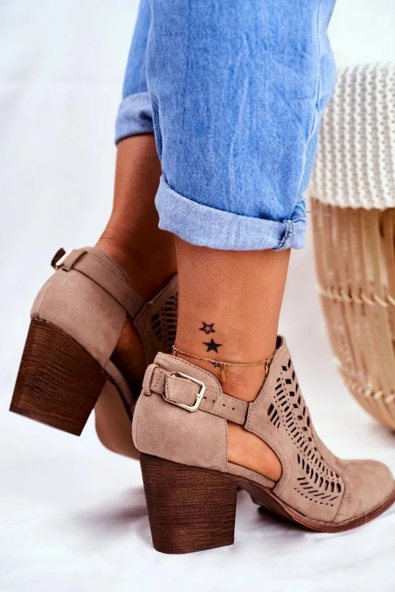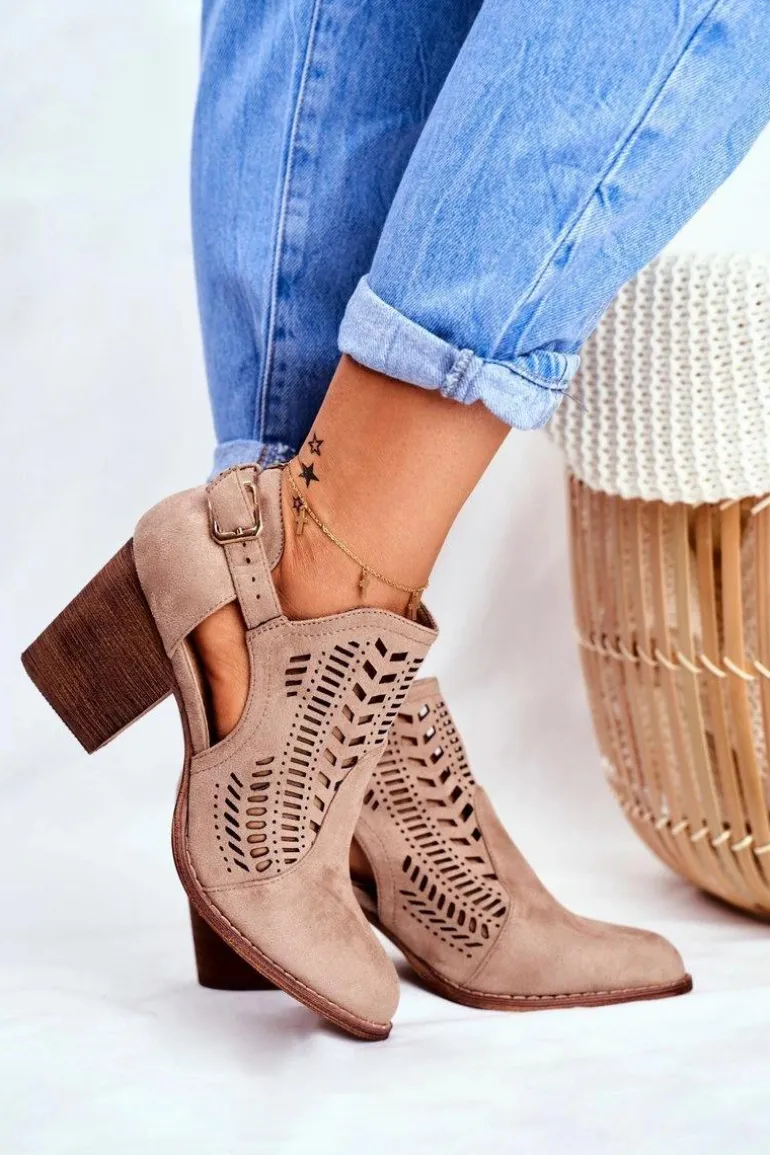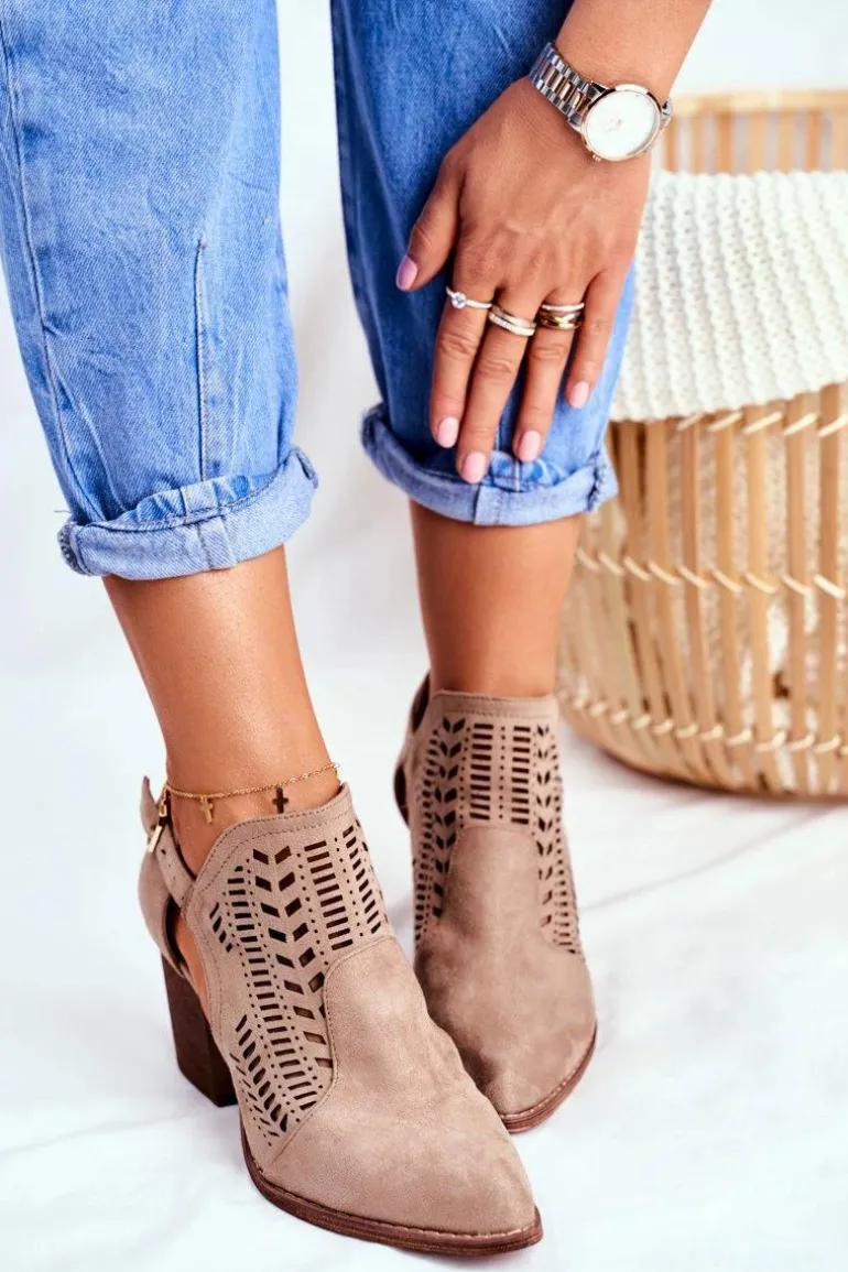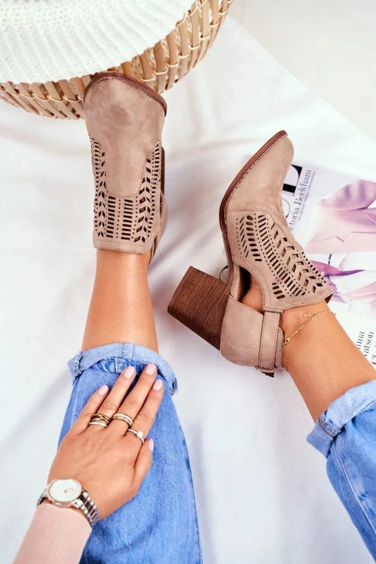 Botki Damskie z Wycięciem Wiosenne Beżowe Velluci