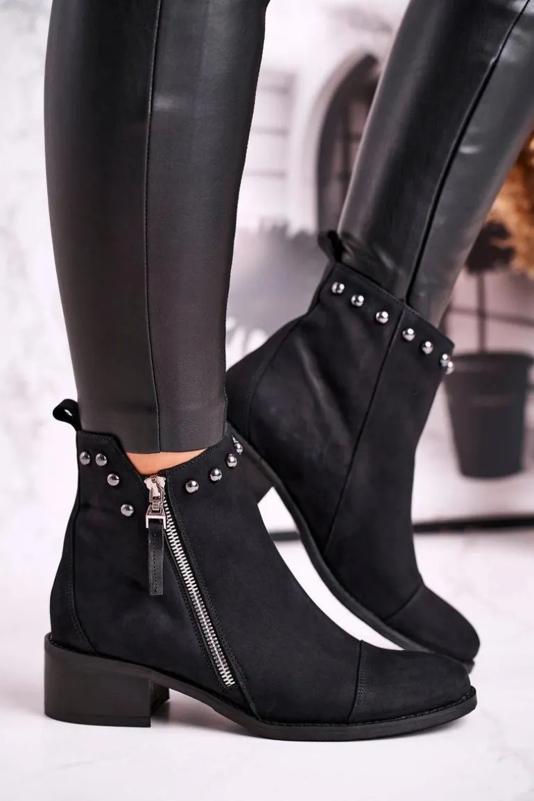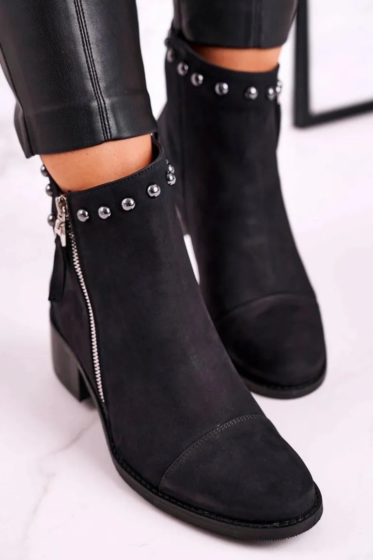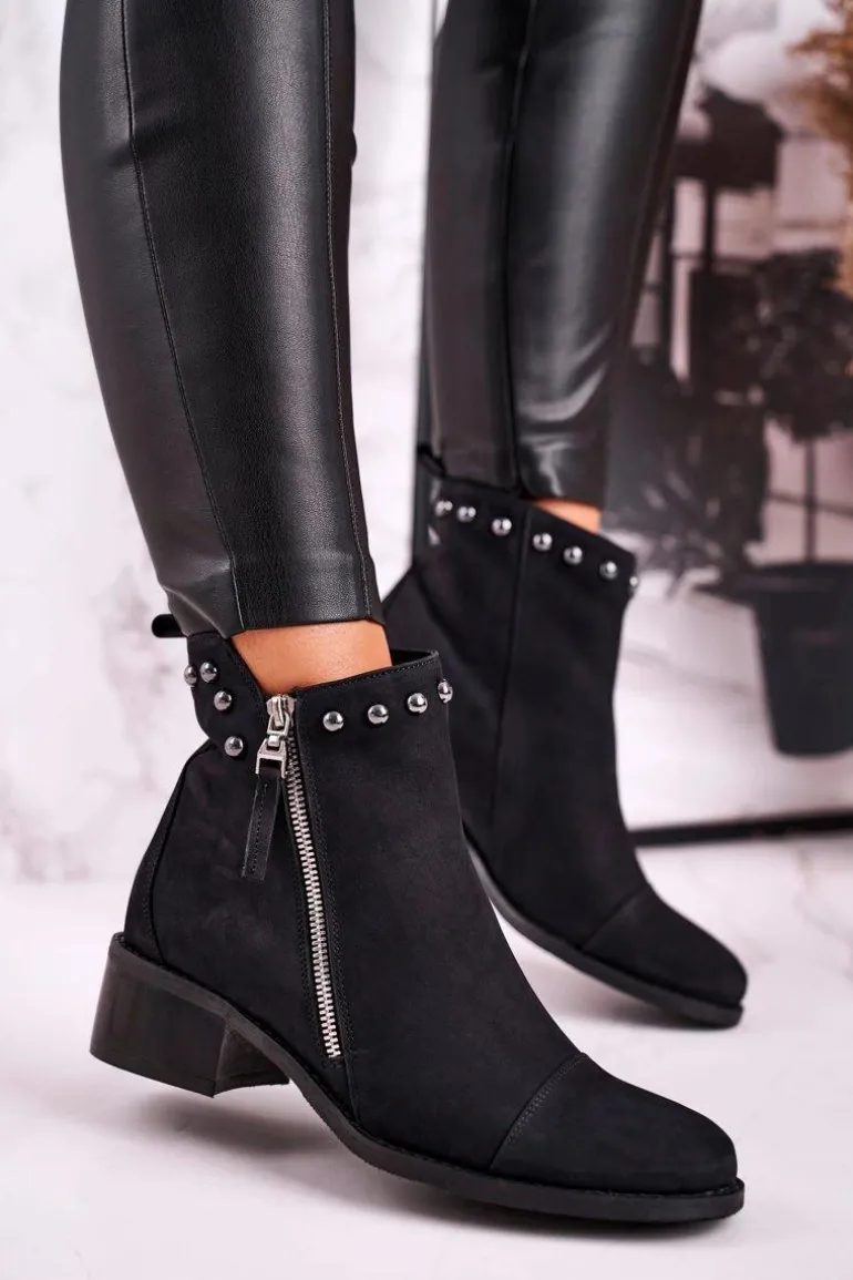 Botki Damskie Zamszowe Ocieplane Laura Messi Czarne 1879
