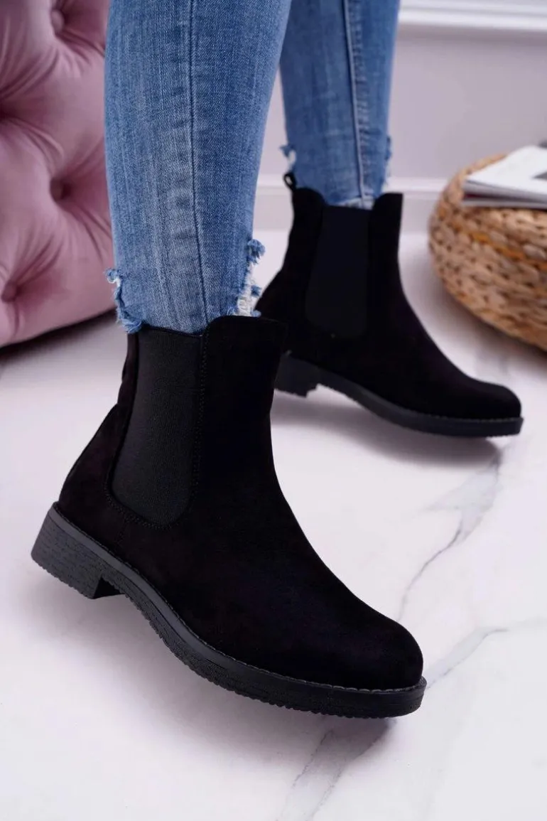 Botki Damskie Zamszowe Sztyblety Czarne 8BT35-0585