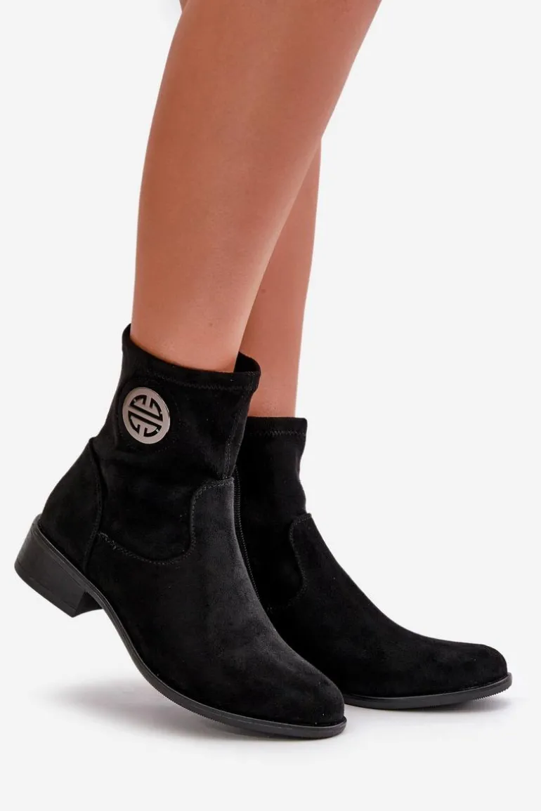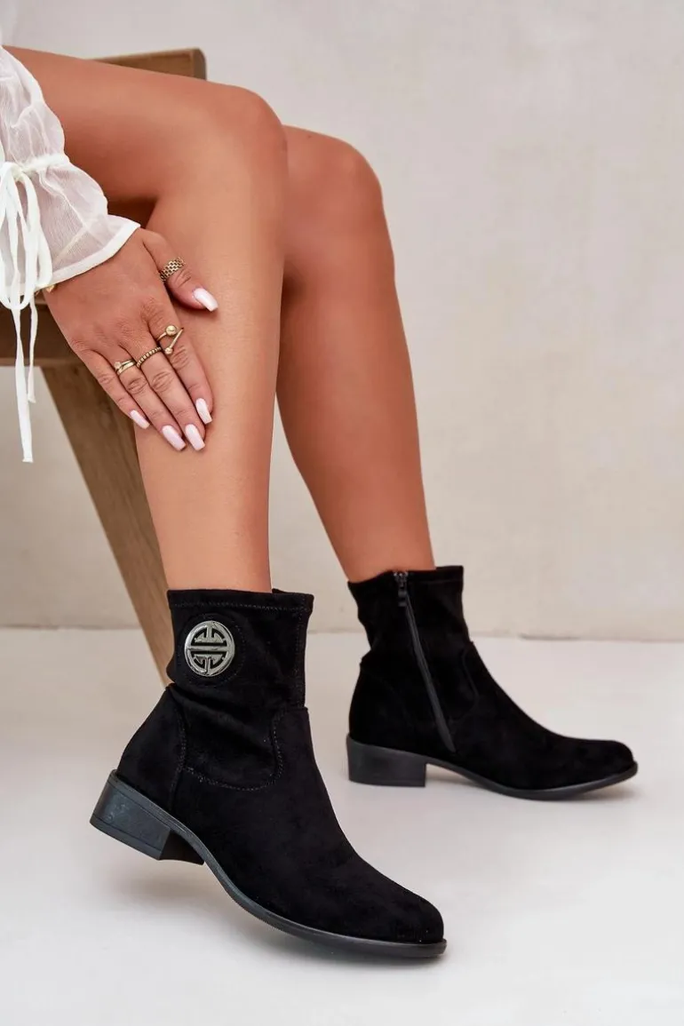 Botki damskie na niskim obcasie od marki Jezzi to elegancki i funkcjonalny wybór na każdą okazję. Zapinane na zamek, zapewniają wygodne zakładanie i zdejmowanie, co jest szczególnie przydatne w codziennym użytkowaniu. Noski w kształcie migdała nadają subtelnej elegancji i wysmuklają stopę. Na cholewce znajduje się ozdobny detal, który dodaje im stylowego charakteru i unikalności. Środek ocieplony wyłącznie na wysokości stopy. Model ten doskonale komponuje się zarówno z casualowymi, jak i bardziej formalnymi stylizacjami. Przy wyborze rozmiaru prosimy sugerować się tabelą rozmiarów.