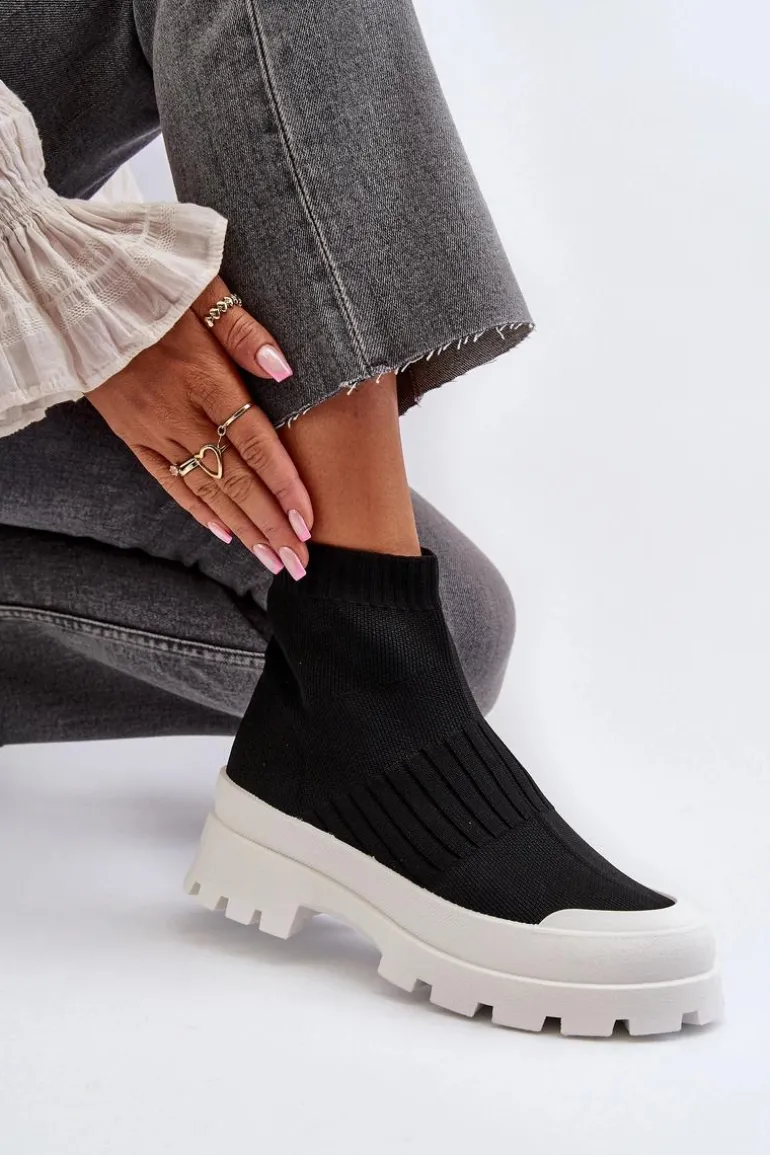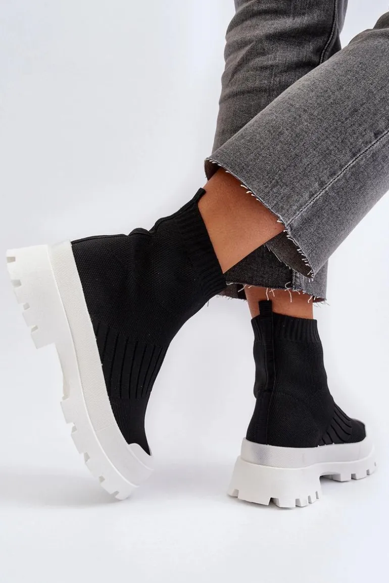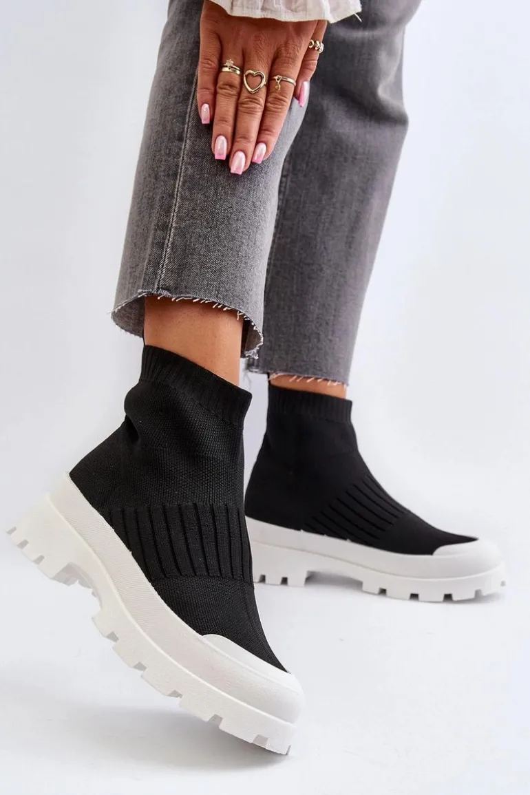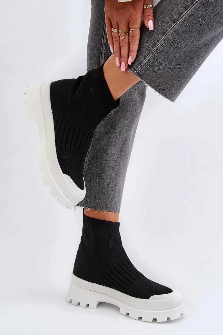 Botki Damskie Ze Skarpetkową Cholewką Wsuwane Czarne Fiename
