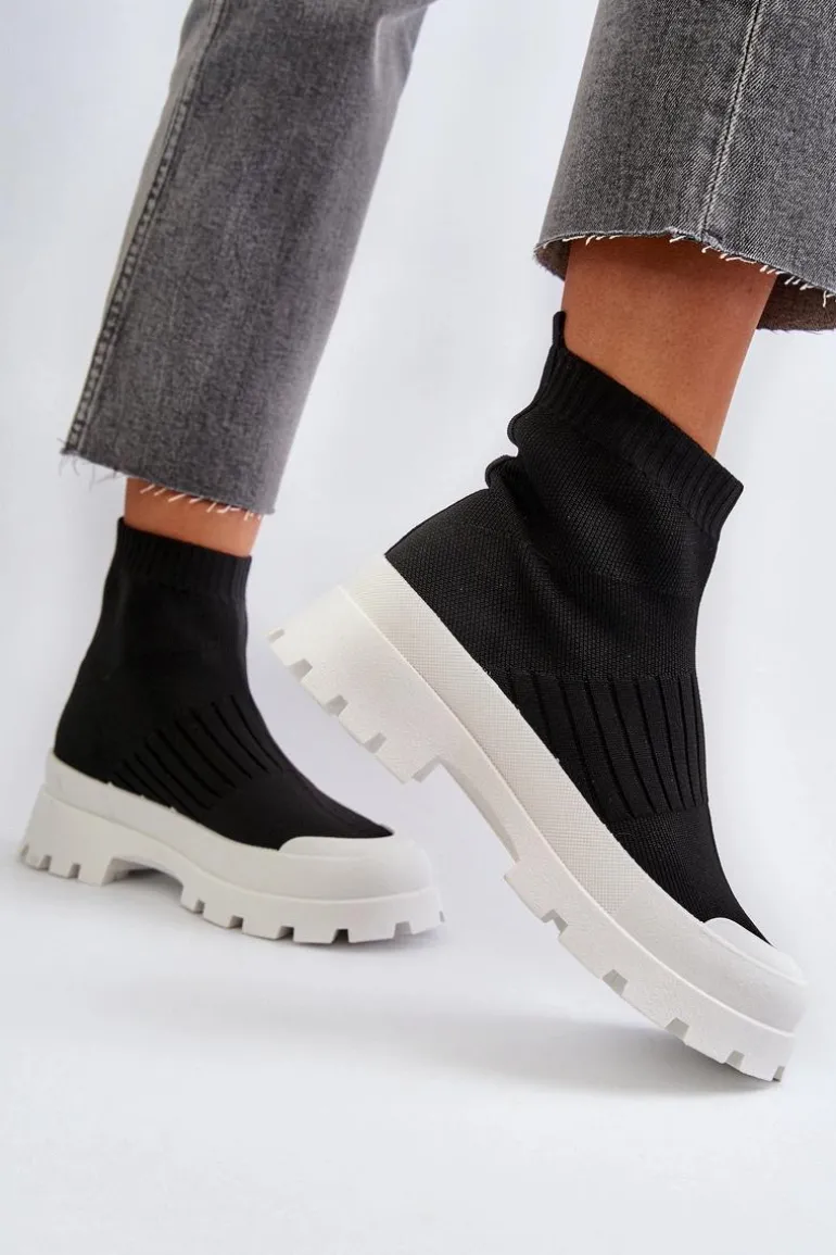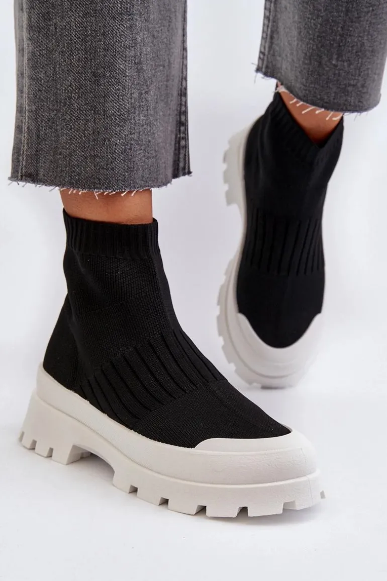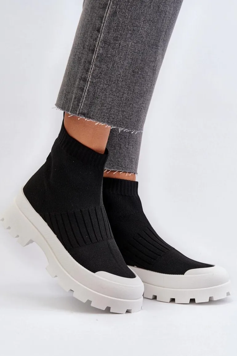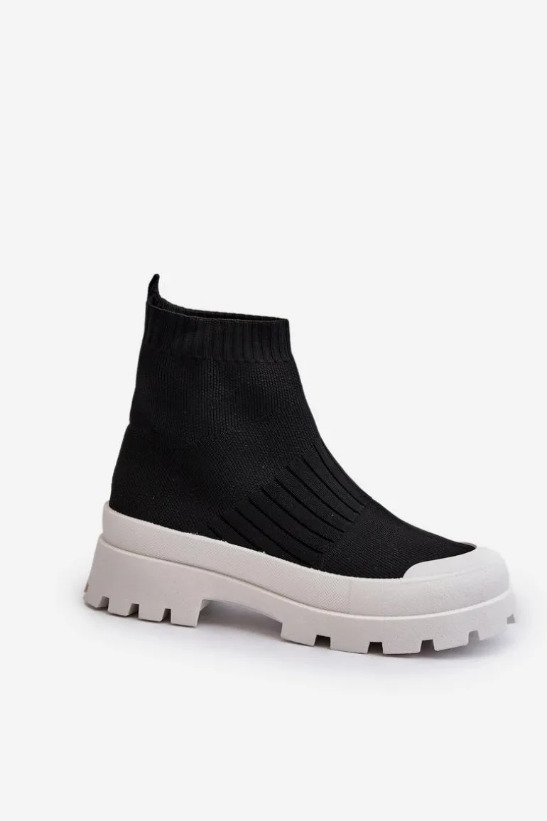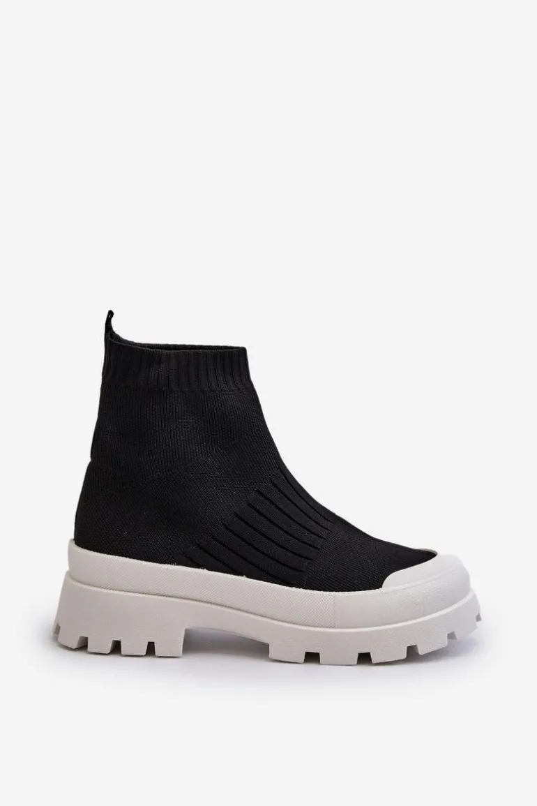 Botki Damskie Ze Skarpetkową Cholewką Wsuwane Czarne Fiename