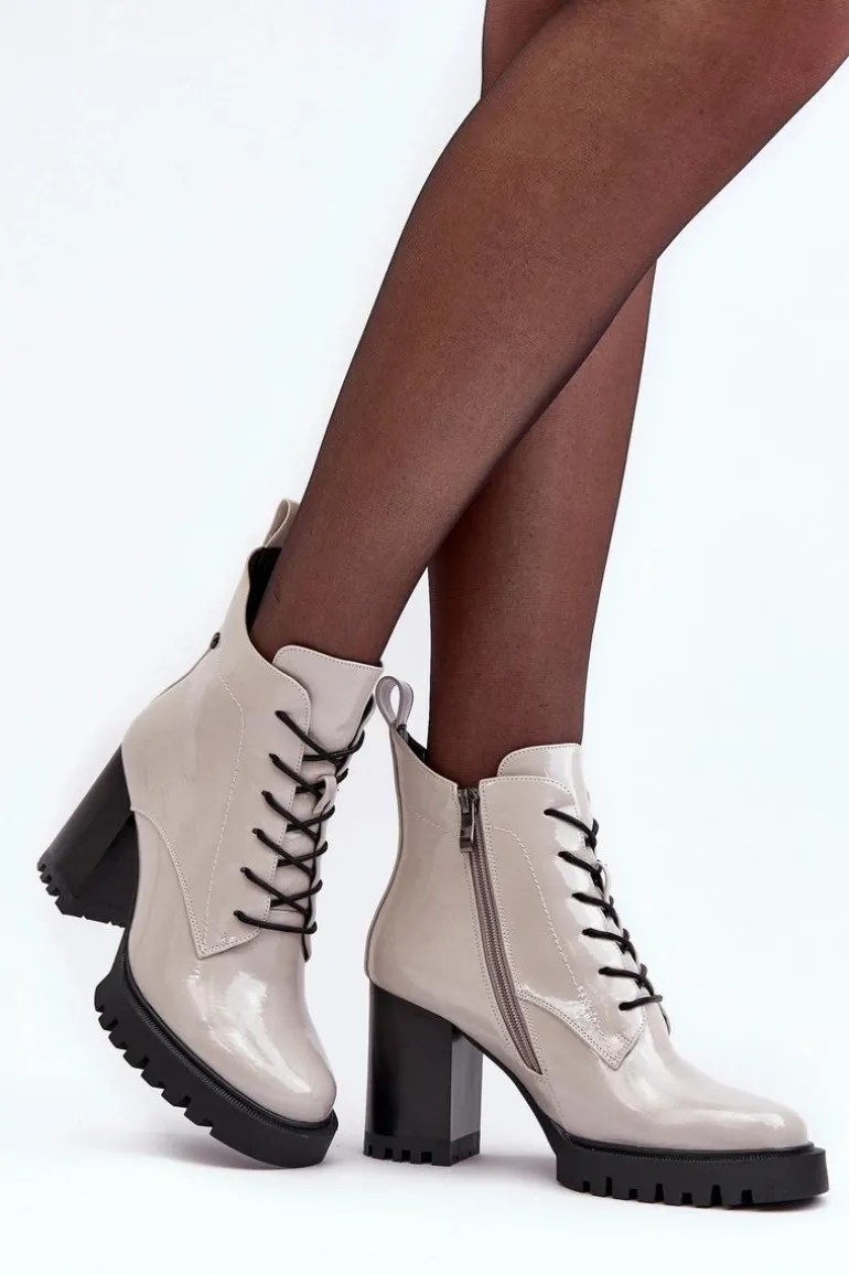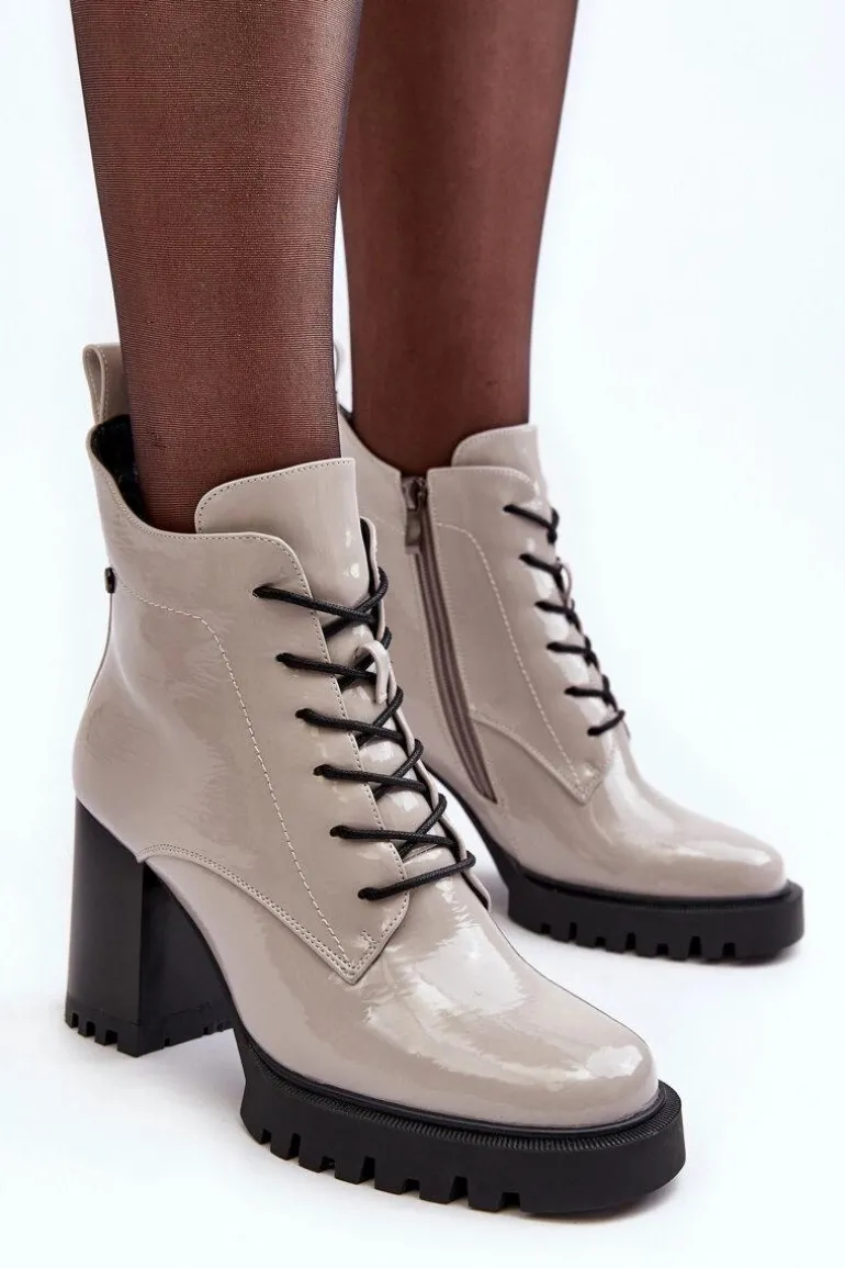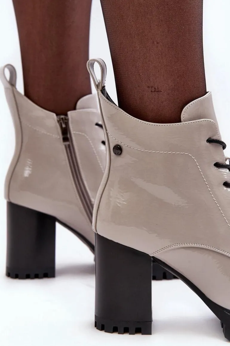 Botki Lakierowane Na Słupku Ocieplane Jasnoszare S.Barski MR870-54