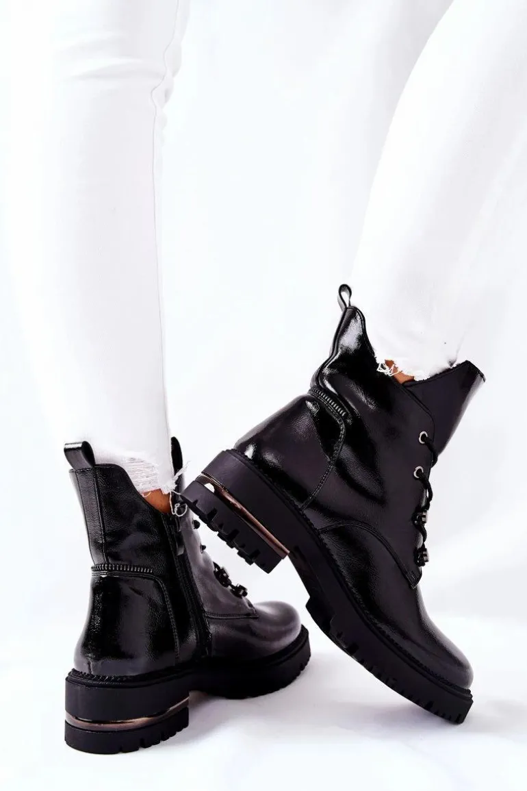 Botki Lakierowane Ocieplane Sergio Leone Czarne TR744