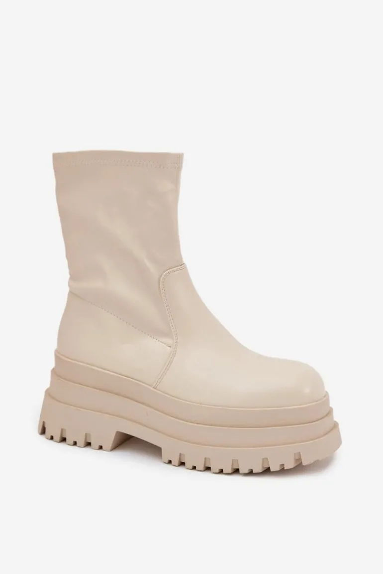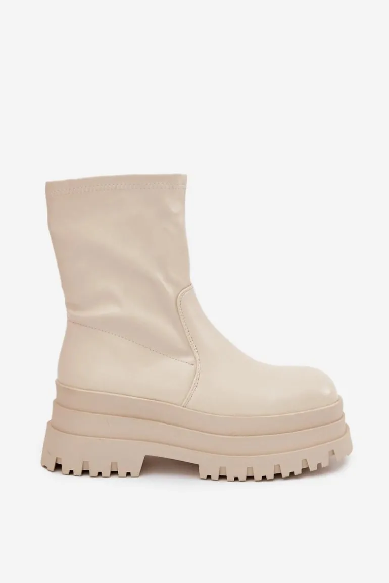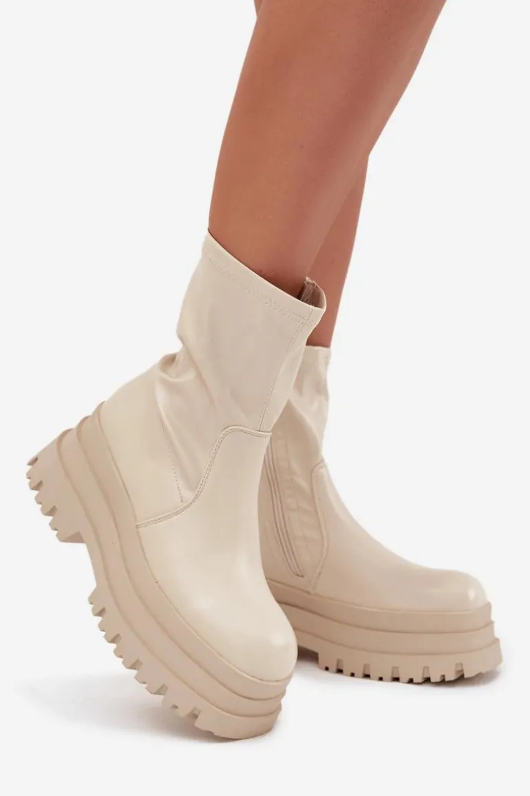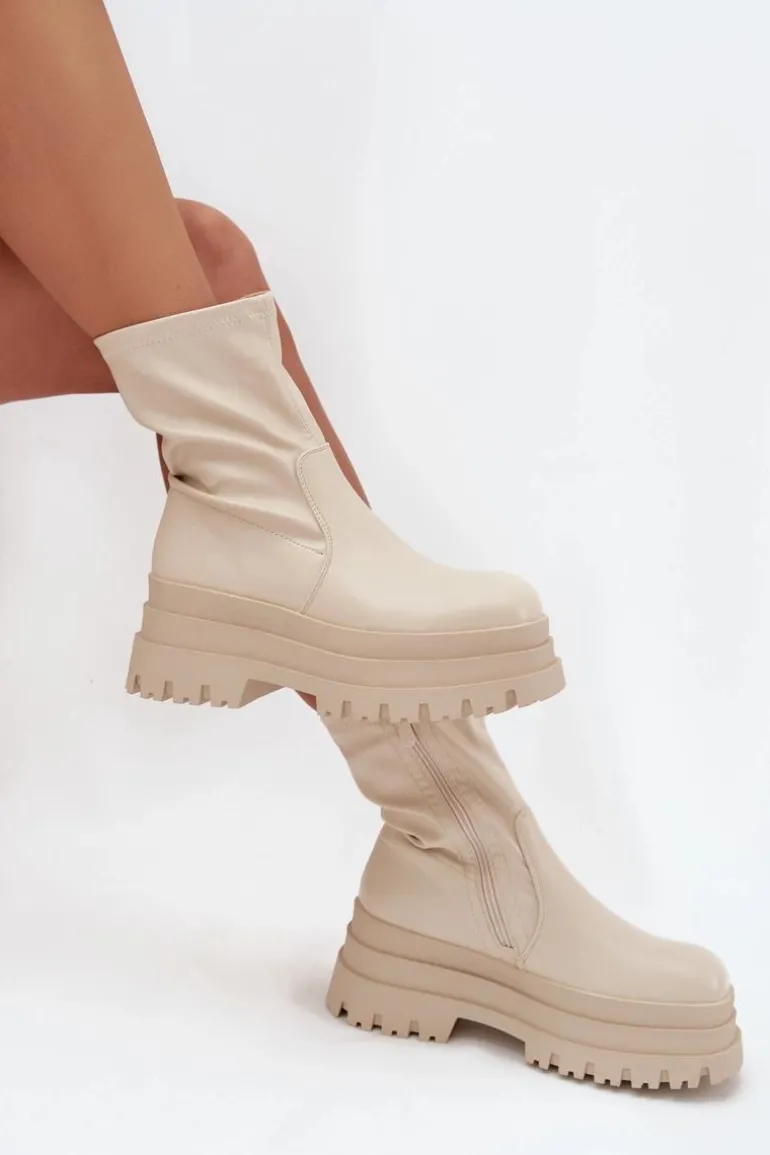 Botki damskie z eko skóry to doskonała propozycja na chłodniejsze dni. Osadzone na masywnej platformie, zapewniają stabilność i dodatkową wysokość. Zapinane na zamek, ułatwiają zakładanie, a zaokrąglone noski dodają im subtelnego charakteru. Wnętrze ocieplone kocem obuwniczym tylko na wysokości stopy gwarantuje ciepło, a jednocześnie pozwala na swobodę ruchu. Koniecznie powinnaś je mieć w swojej jesienno-zimowej szafie! Przy wyborze rozmiaru prosimy sugerować się tabelą rozmiarów.