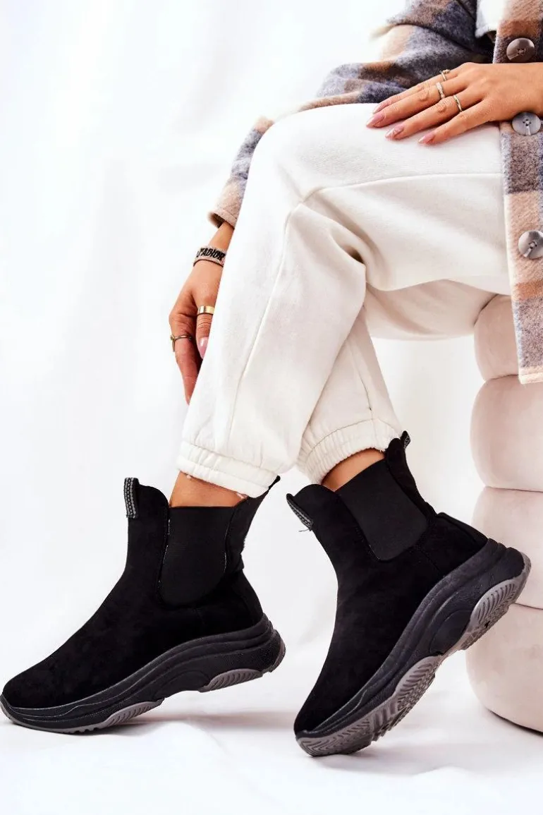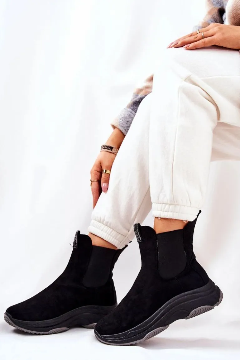 Botki na platformie zostały wykonane z miłego w dotyku eko zamszu. Na cholewce znajdują się ściągacze, które dopasują się do tęgości cholewki. Buty nie są ocieplane. Botki na stabilnej podeszwie zapewnią komfort i wygodę. Będą pasować do wielu jesienno-zimowych stylizacji. Koniecznie sprawdź także pozostałe nasze modele botków! Przy wyborze rozmiaru prosimy sugerować się tabelą rozmiarów.