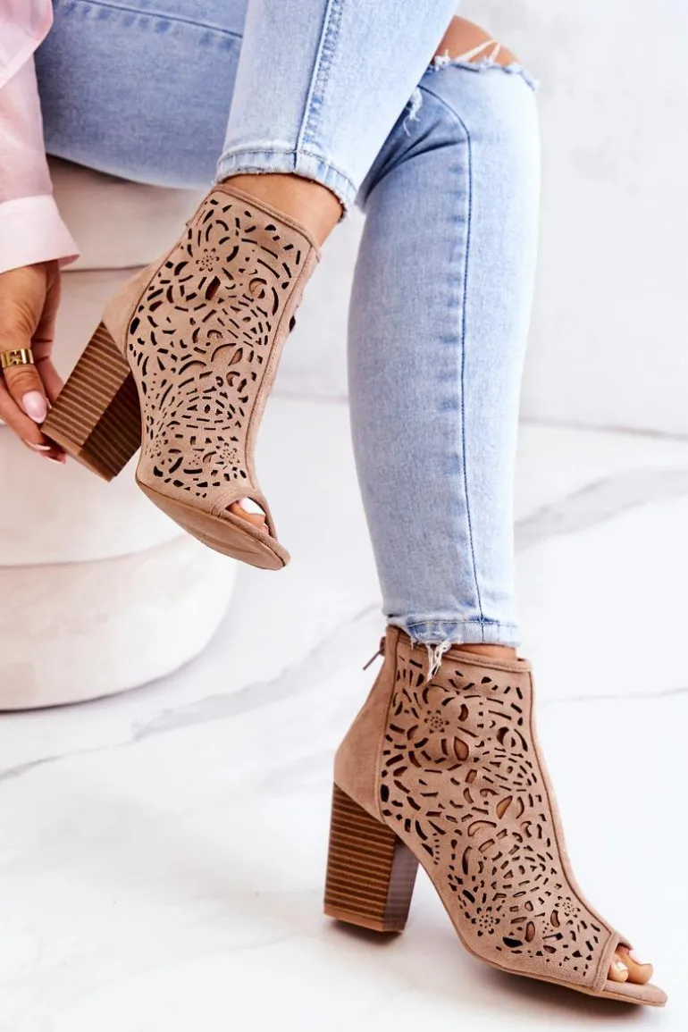 Botki to nieodłączny element kobiecych stylizacji. Wykonane z zamszowej eko skóry. Klasyczne botki z wyciętymi palcami są zapinane na suwak z tyłu cholewki. Obcas w postaci słupka optycznie wysmukli nogę. Ażurowy wzorek sprawi, że buty będą cudownie prezentować się na nodze! Koniecznie sprawdź także pozostałą naszą kolekcję botków! Przy wyborze rozmiaru prosimy sugerować się tabelą rozmiarów.