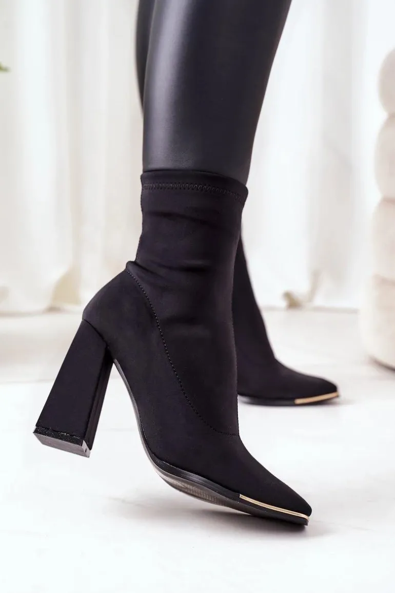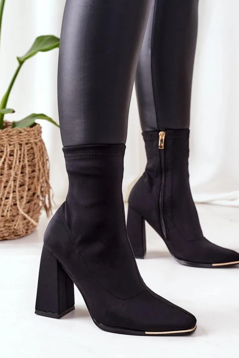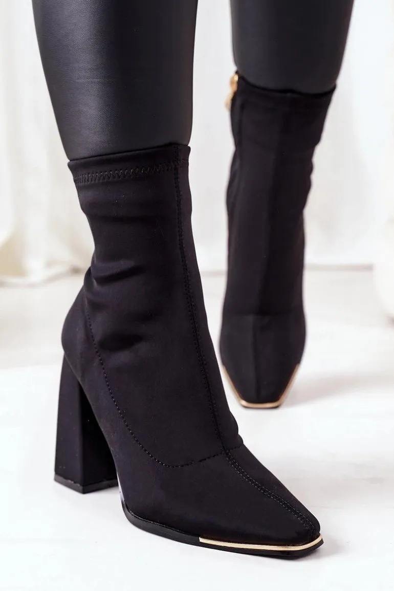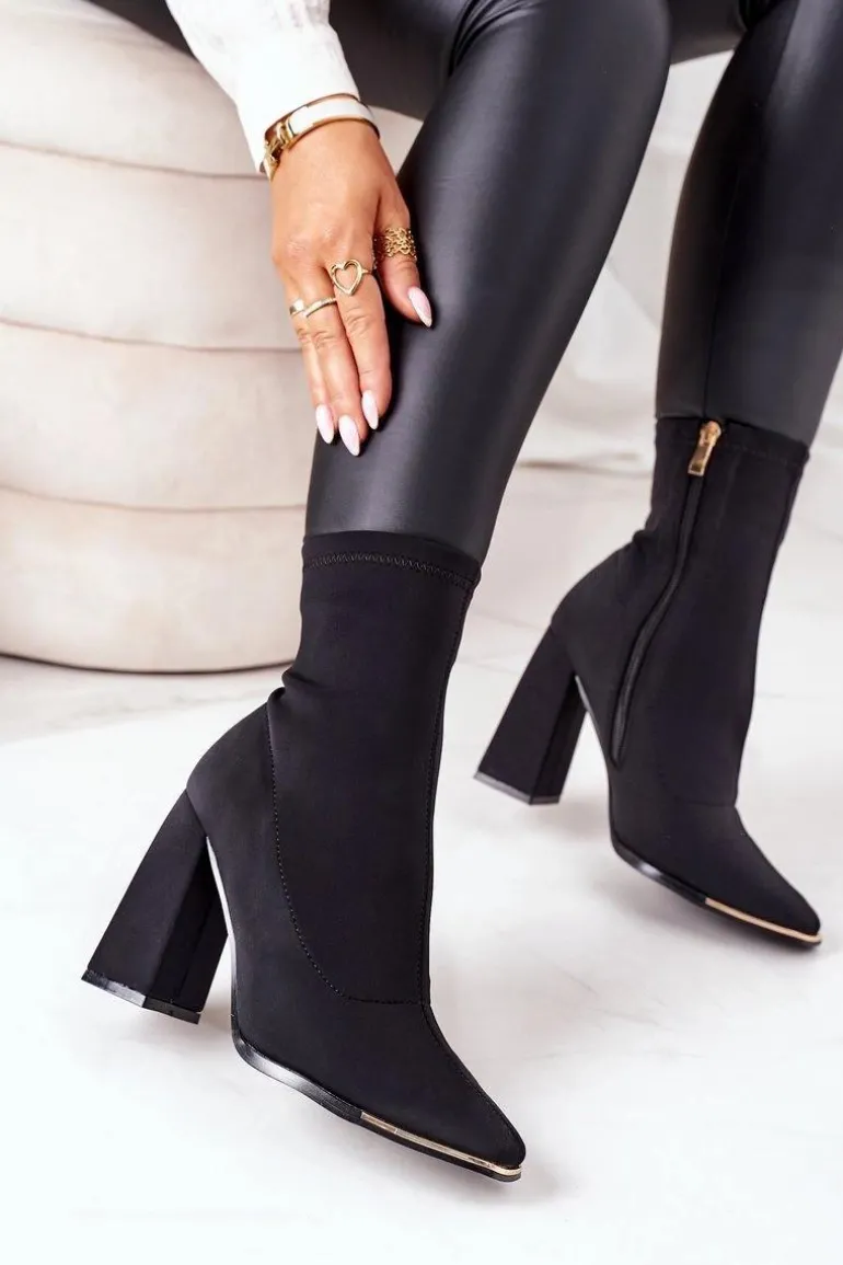 Piękne botki na słupku wykonane z elastycznej tkaniny. Wyjątkowy obcas oraz kwadratowy nosek urozmaicą każdą stylizację! Przy wyborze rozmiaru prosimy sugerować się tabelą rozmiarów.