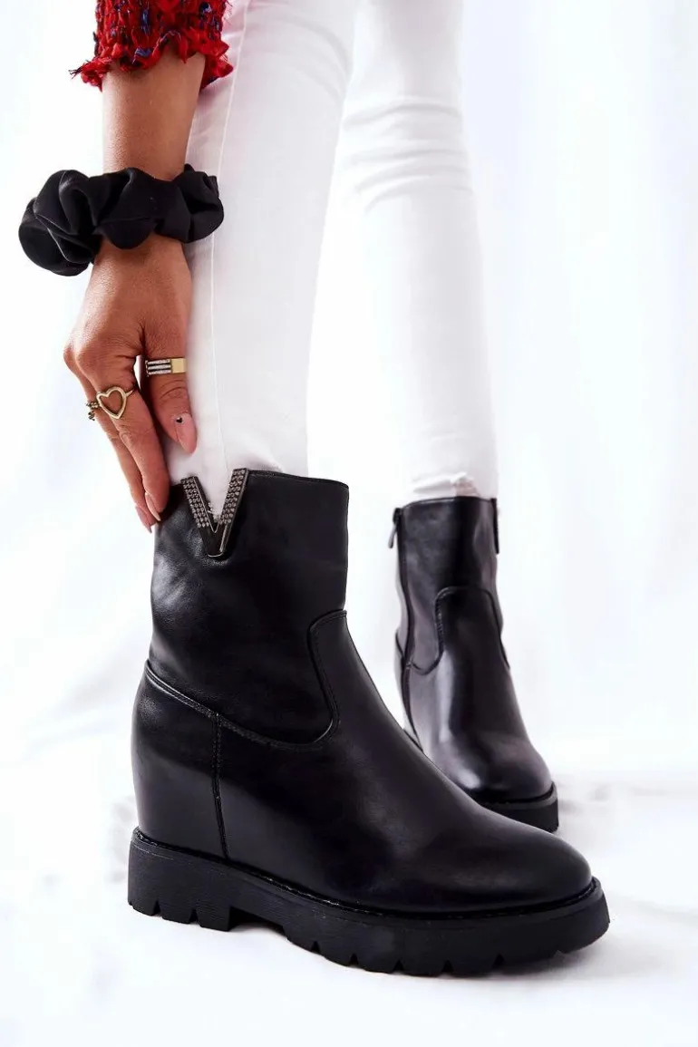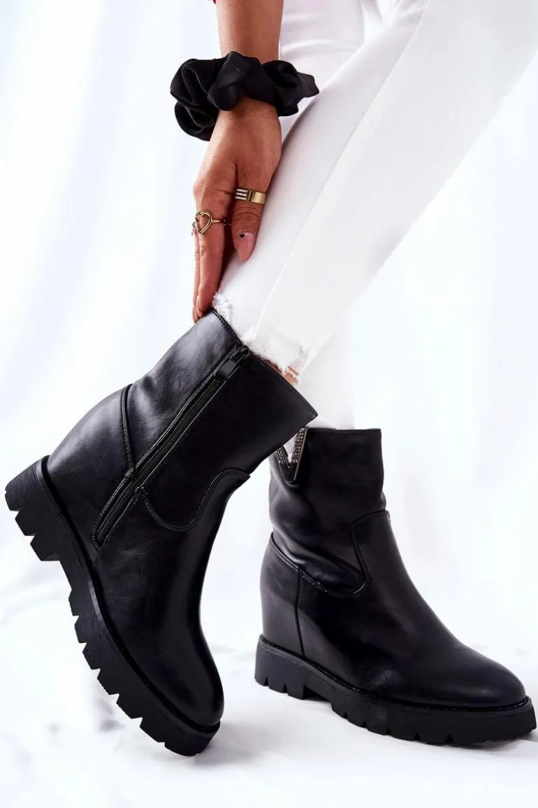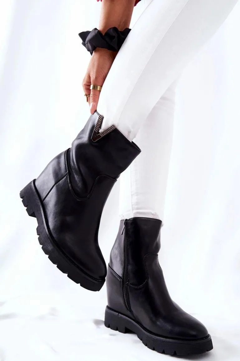 Botki Na Ukrytym Koturnie Z Emblematem Czarne Tivera