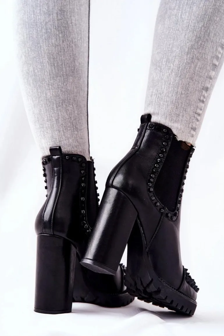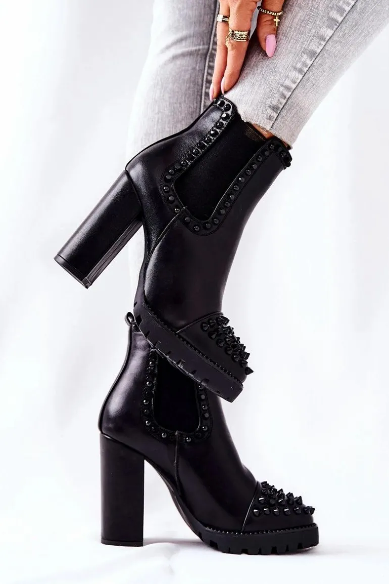 Botki na wyjątkowe okazje! Ozdobione pięknymi dżetami na nosku oraz na cholewce. Zostały wykonane z ekologicznej skóry. Obcas w postaci wysokiego słupka oraz platforma. Nie czekaj aż znikną i zrób wrażenie nie tylko na sobie! Przy wyborze rozmiaru prosimy sugerować się tabelą rozmiarów.