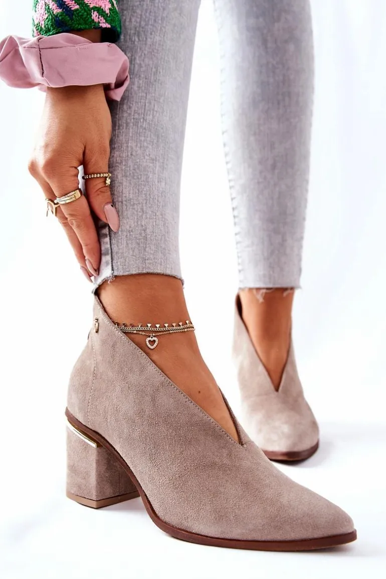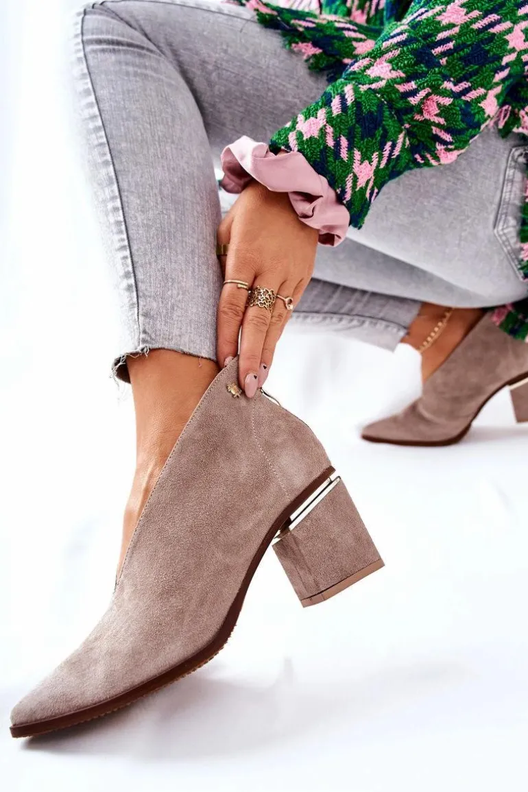 Eleganckie botki dodadzą Twoim stylizacjom klasy i szyku. Wycięta cholewka pięknie wyeksponuje nogi. Stabilny obcas posiada ozdobny element. Nosek w szpic. Z tyłu na botkach znajduje się suwak. Buty na zewnątrz oraz w środku sa wykonane z naturalnej skóry. Nie przegap okazji! Pora na nowe buty! Przy wyborze rozmiaru prosimy sugerować się tabelą rozmiarów.