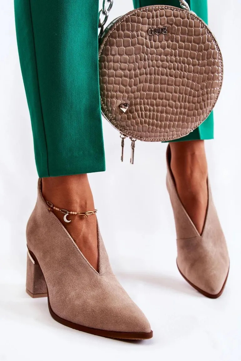 Eleganckie botki dodadzą Twoim stylizacjom klasy i szyku. Wycięta cholewka pięknie wyeksponuje nogi. Stabilny obcas posiada ozdobny element. Nosek w szpic. Z tyłu na botkach znajduje się suwak. Buty na zewnątrz oraz w środku są wykonane z naturalnej skóry. Nie przegap okazji! Pora na nowe buty! Przy wyborze rozmiaru prosimy sugerować się tabelą rozmiarów.