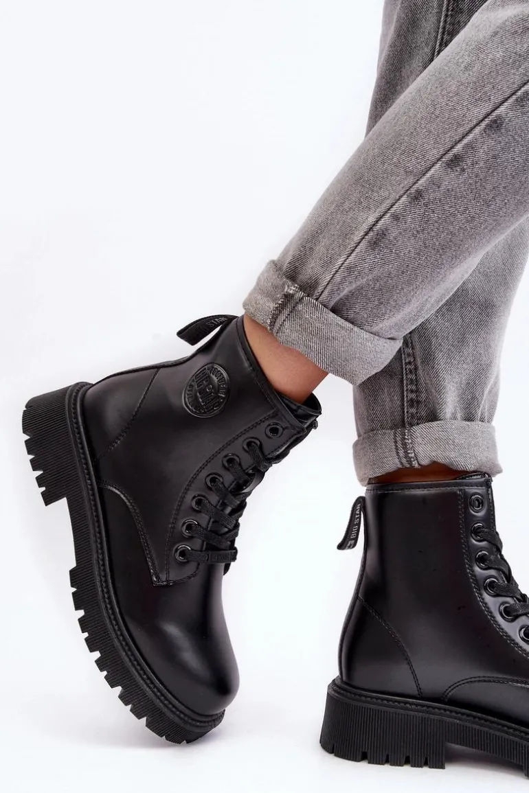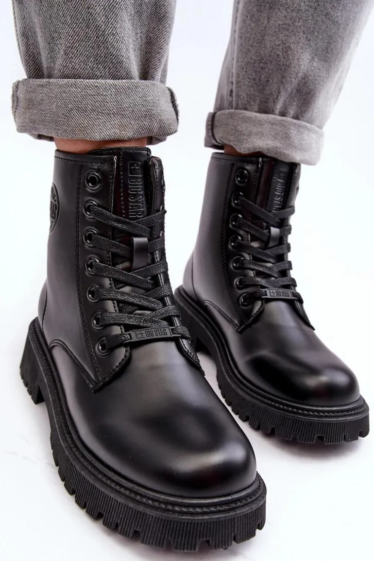 Polska marka BIG STAR to niebanalny styl oraz wysoka jakość wykonania. Te modne botki zostały wykonane ze skóry ekologicznej. Z boku cholewki logo marki. Model ten jest klasycznie sznurowany. Podeszwa wykonana z gumowego tworzywa. Noski zaokrąglone, cholewka za kostkę. Przy wyborze rozmiaru prosimy sugerować się tabelą rozmiarów.
