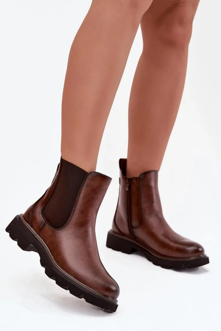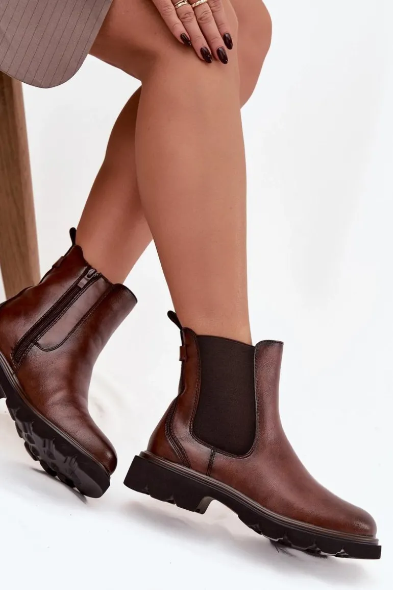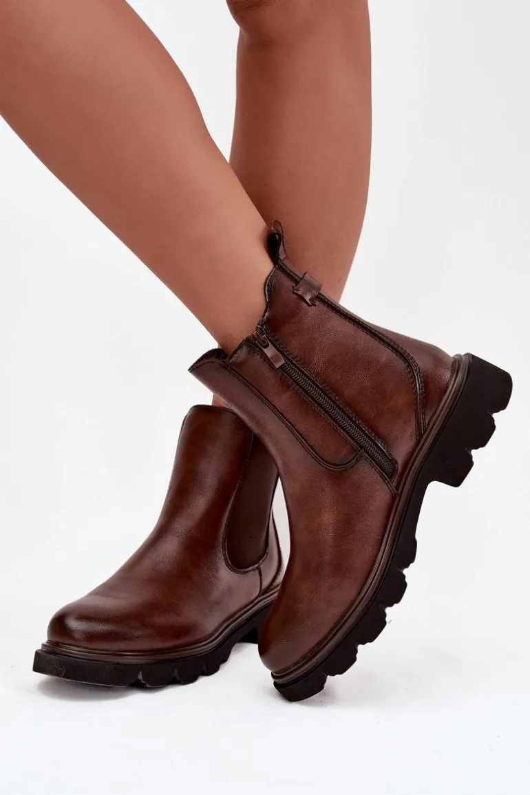 Botki Sztyblety Damskie Ocieplane Na Zamek Brązowe Rivelia