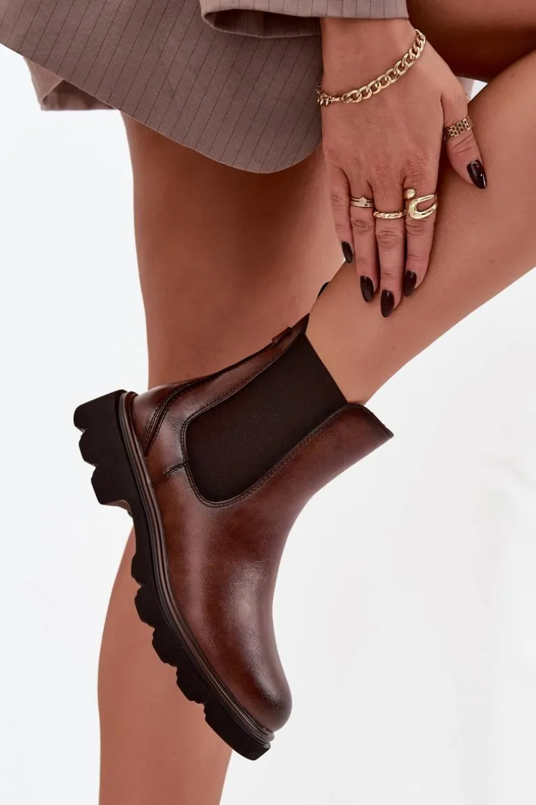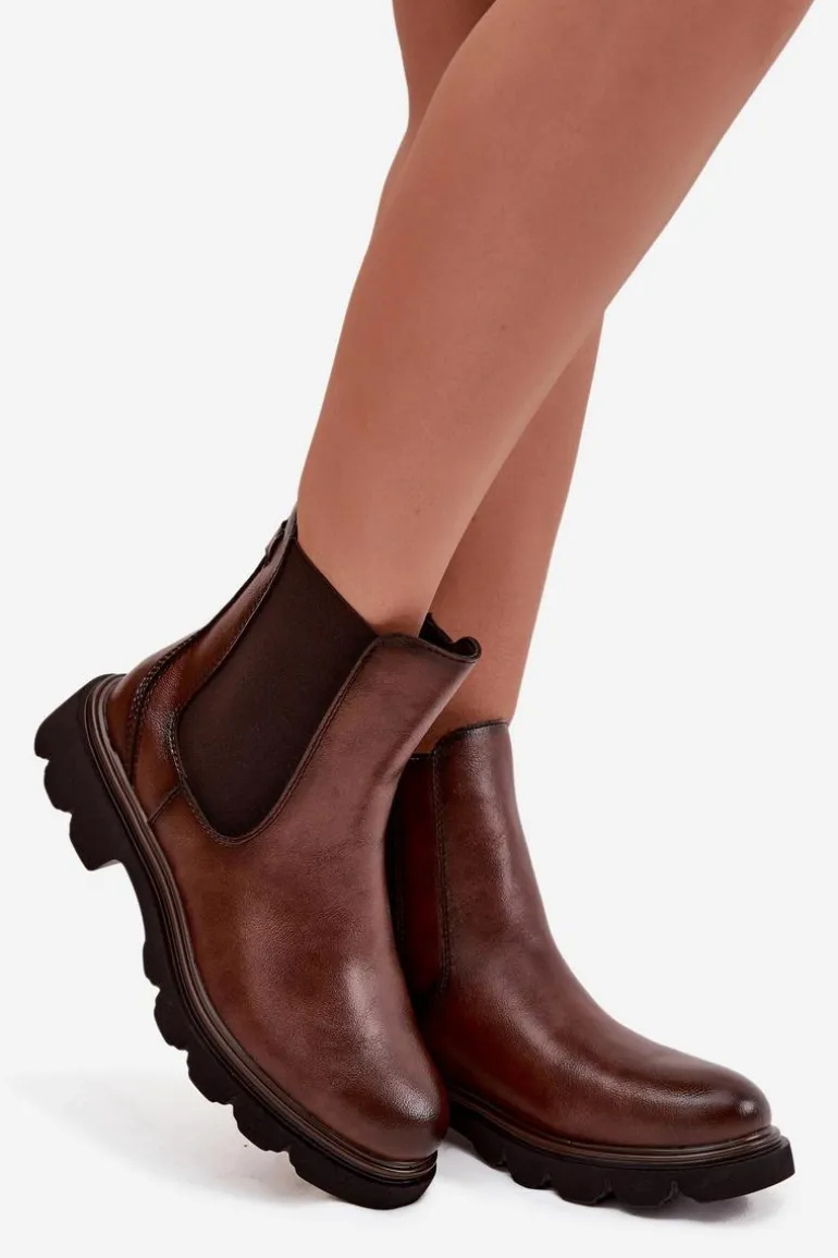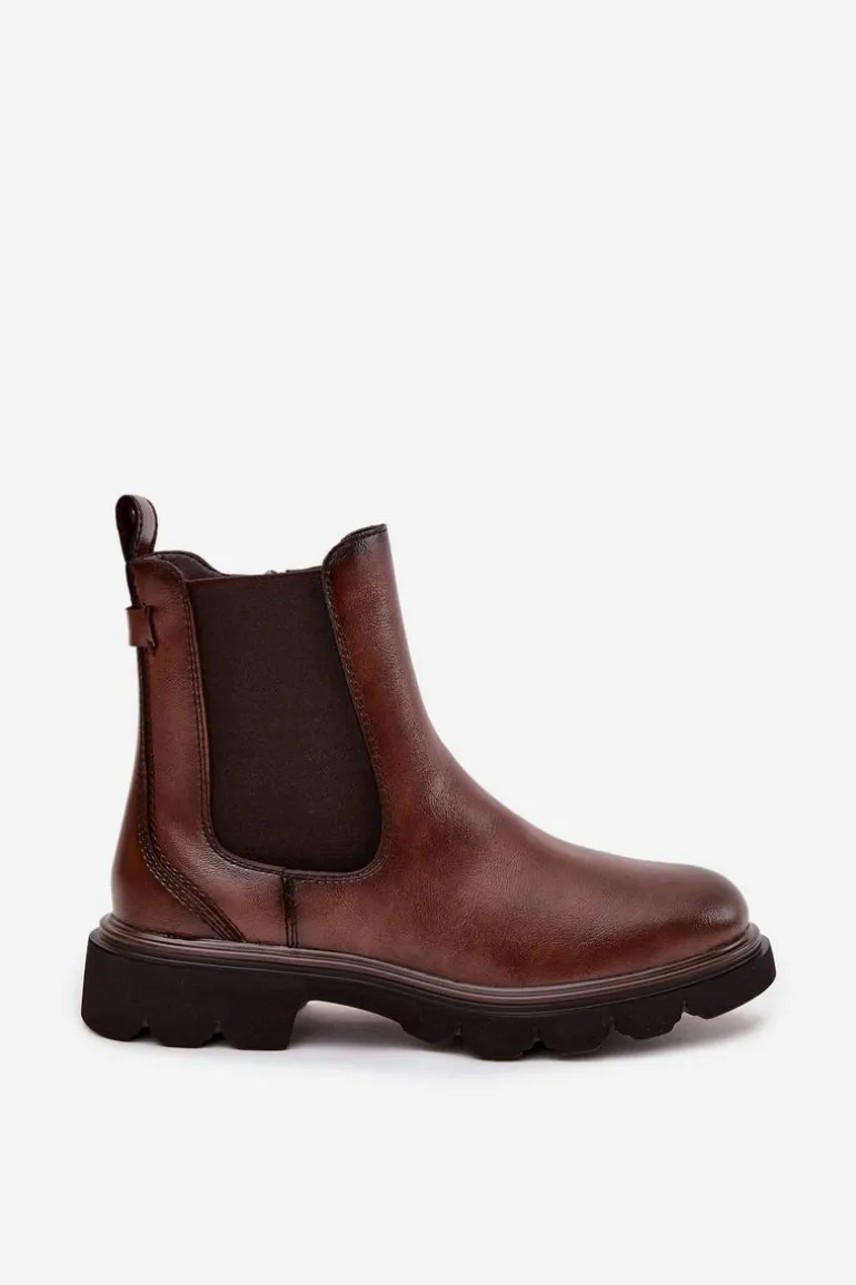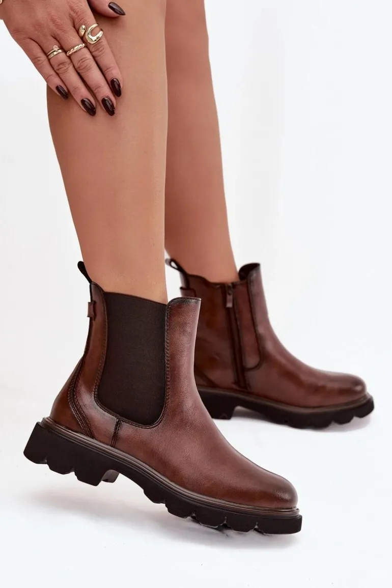 Botki Sztyblety Damskie Ocieplane Na Zamek Brązowe Rivelia