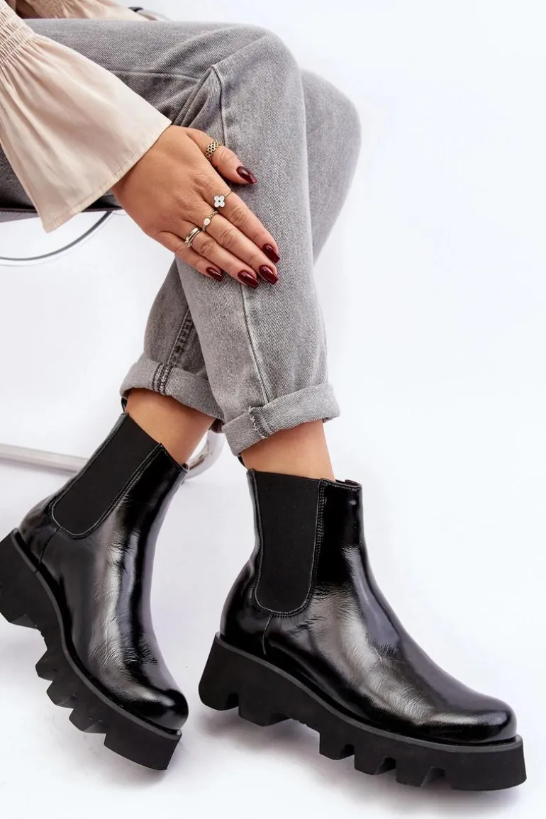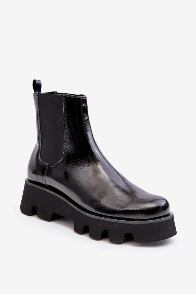 Damskie botki wykonane ze skóry naturalnej. Osadzone na płaskim obcasie i platformie ze żłobieniami. Model wysuwany. Środek ocieplony kocem obuwniczym. Noski zaokrąglone. Usztywniony zapiętek. Świetny model do wielu stylizacji! Musisz je mieć! Przy wyborze rozmiaru prosimy sugerować się tabelą rozmiarów.