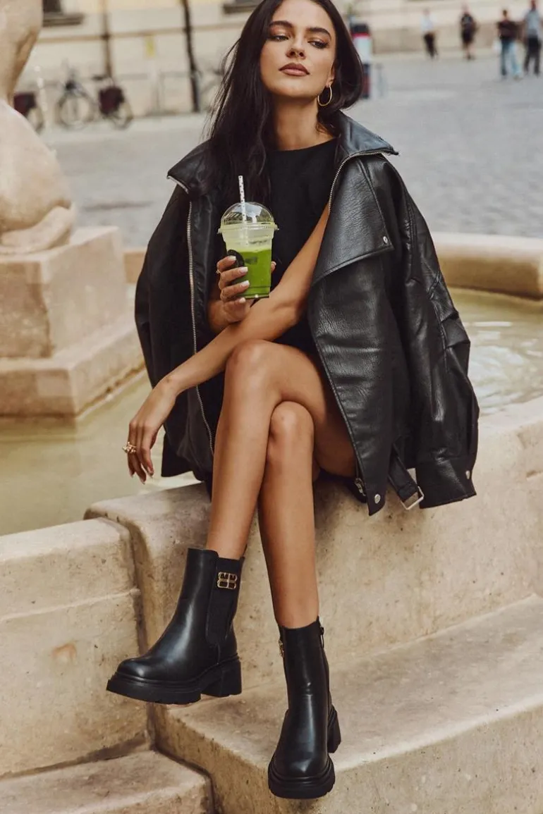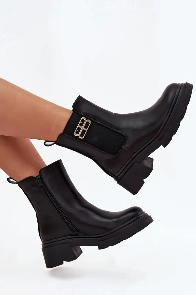 Botki sztyblety damskie wykonane z eko skóry to klasyczny model, który doskonale sprawdzi się w sezonie jesienno-zimowym. Prosty fason, zapinany na zamek gwarantuje wygodę zakładania, a ocieplenie kocem obuwniczym zapewnia komfort i ciepło w chłodniejsze dni. Całość uzupełnia subtelny złoty detal umieszczony z boku cholewki, który dodaje nowoczesnego, stylowego akcentu. Model ten świetnie komponuje się zarówno z jeansami i płaszczem, jak i z sukienką czy spódnicą.