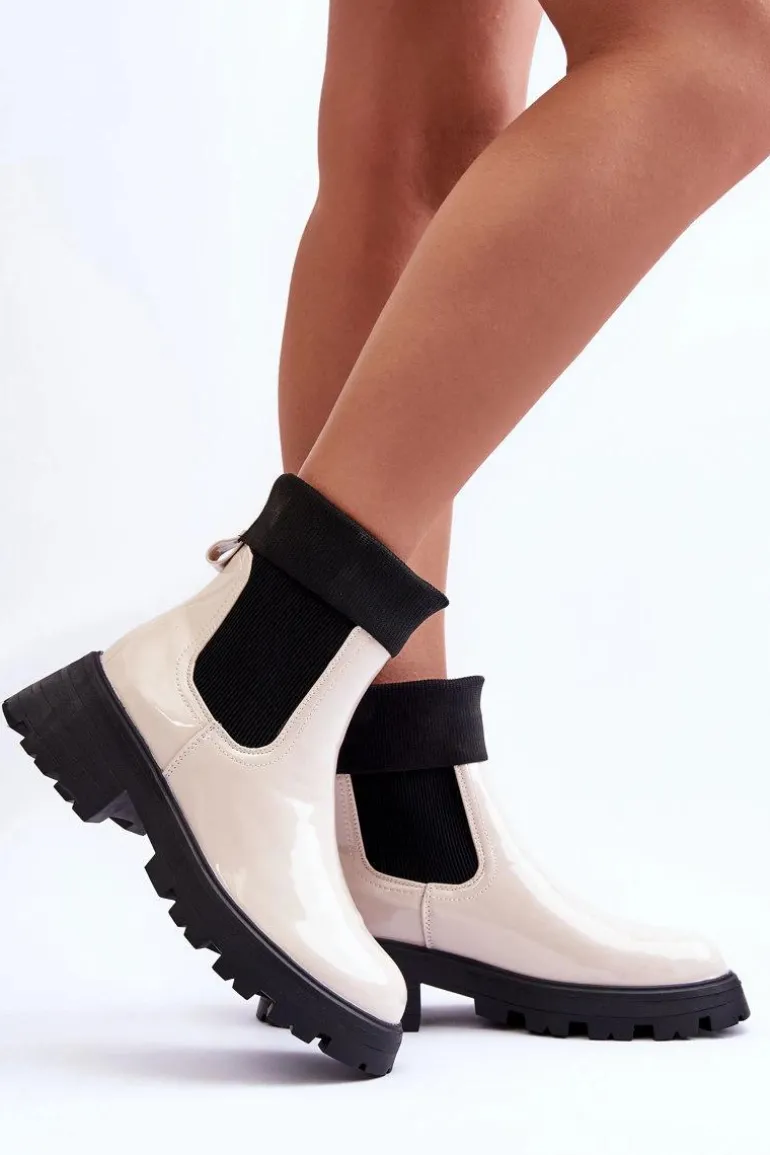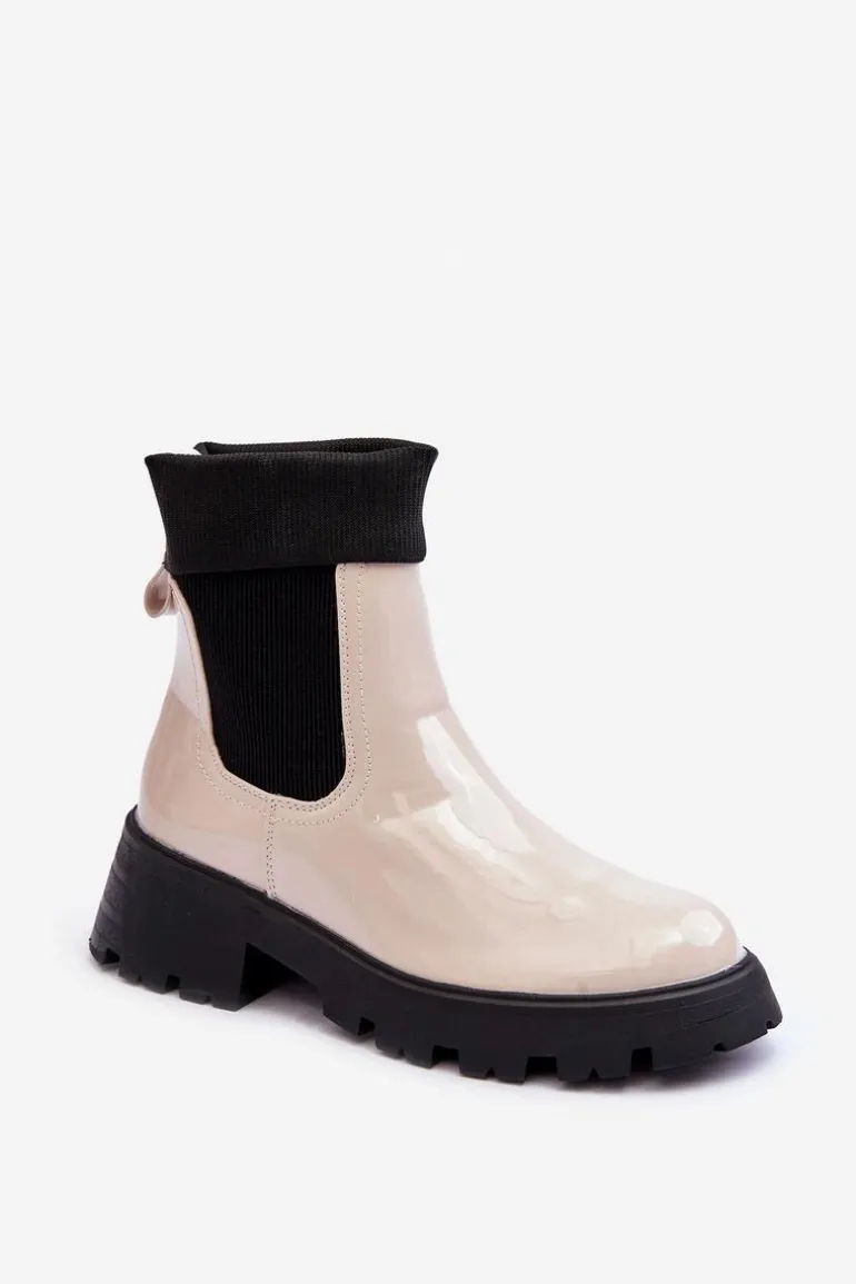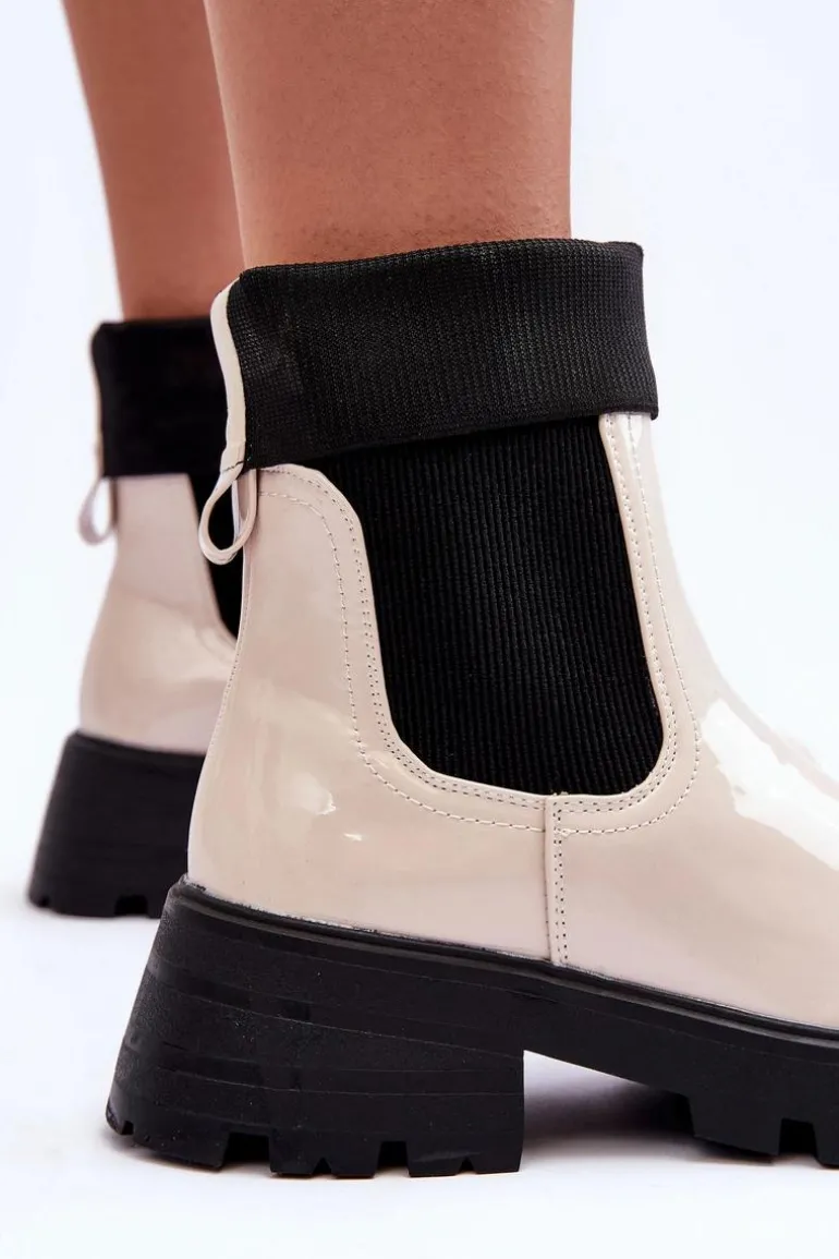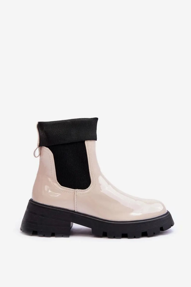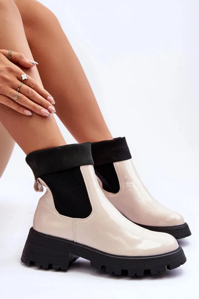 Botki Sztyblety Lakierowane Damskie Beżowe Pavo
