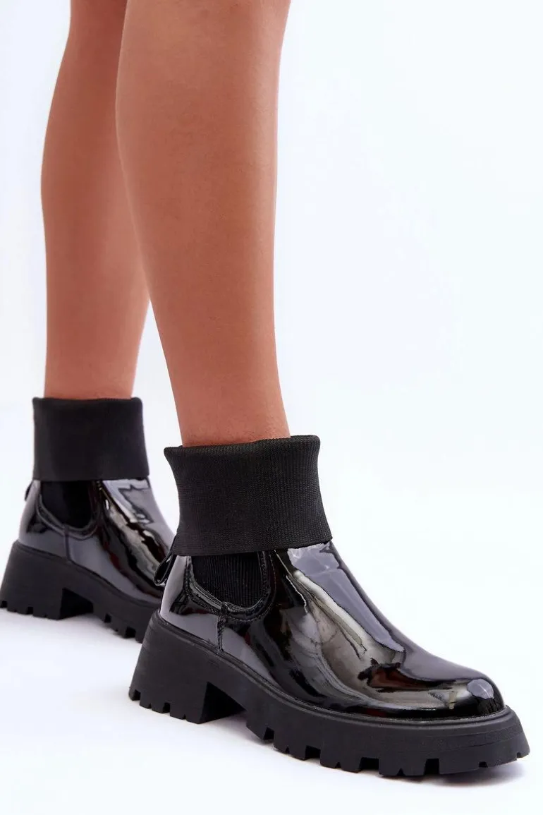 Botki damskie zostały wykonane ze skóry ekologicznej. Osadzone na masywnym, płaskim obcasie i platformie. Cholewka posiada elastyczne wstawki. Model ten jest wsuwany z zaokrąglonym noskiem. Platforma i obcas zapewnią stabilność na każdym kroku. Koniecznie powinnaś mieć te sztyblety w swojej szafie! Przy wyborze rozmiaru prosimy sugerować się tabelą rozmiarów.