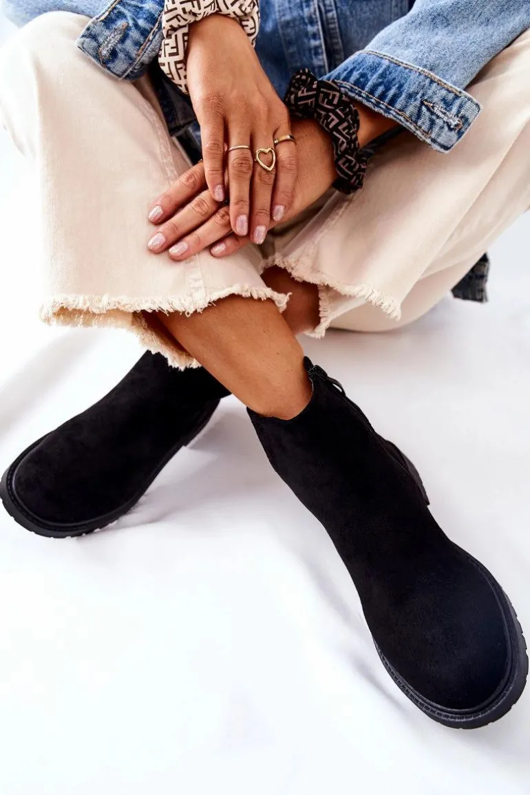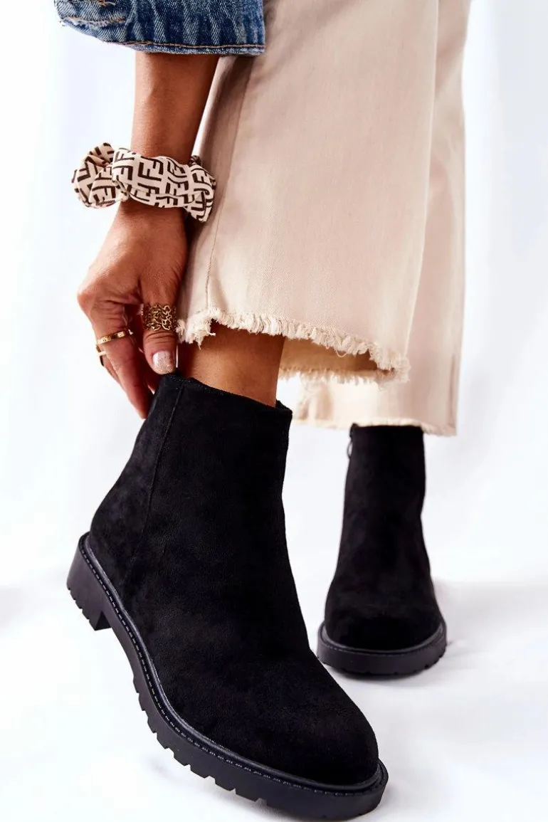 Model botków, który pasuje do każdej stylizacji dzięki swojemu klasycznemu fasonowi. Wykonane z przyjemnego w dotyku eko zamszu. Zapinane na suwak. W środku w całości ocieplane kocem obuwniczym. Klasyczne botki powinny znaleźć się w garderobie każdej kobiety, dlatego nie czekaj! Kup je już dziś! Przy wyborze rozmiaru prosimy sugerować się tabelą rozmiarów.