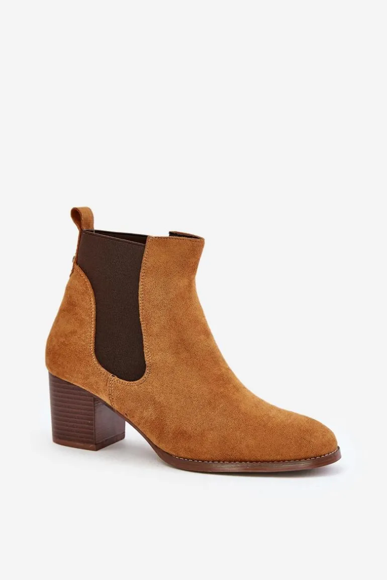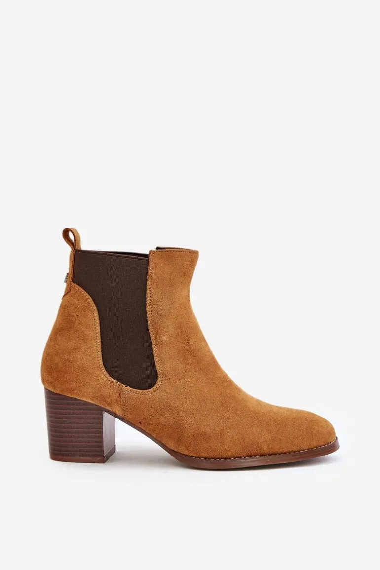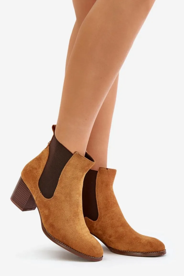 Botki wykonane z eko zamszu to elegancka opcja na każdą okazję. Osadzone na stabilnym obcasie typu słupek, z zaokrąglonymi noskami, łączą w sobie styl i wygodę. Na cholewce elastyczne wstawki. Wnętrze delikatnie ocieplane kocem obuwniczym zapewnia komfort w chłodniejsze dni. Idealne do codziennych stylizacji! Przy wyborze rozmiaru prosimy sugerować się tabelą rozmiarów.