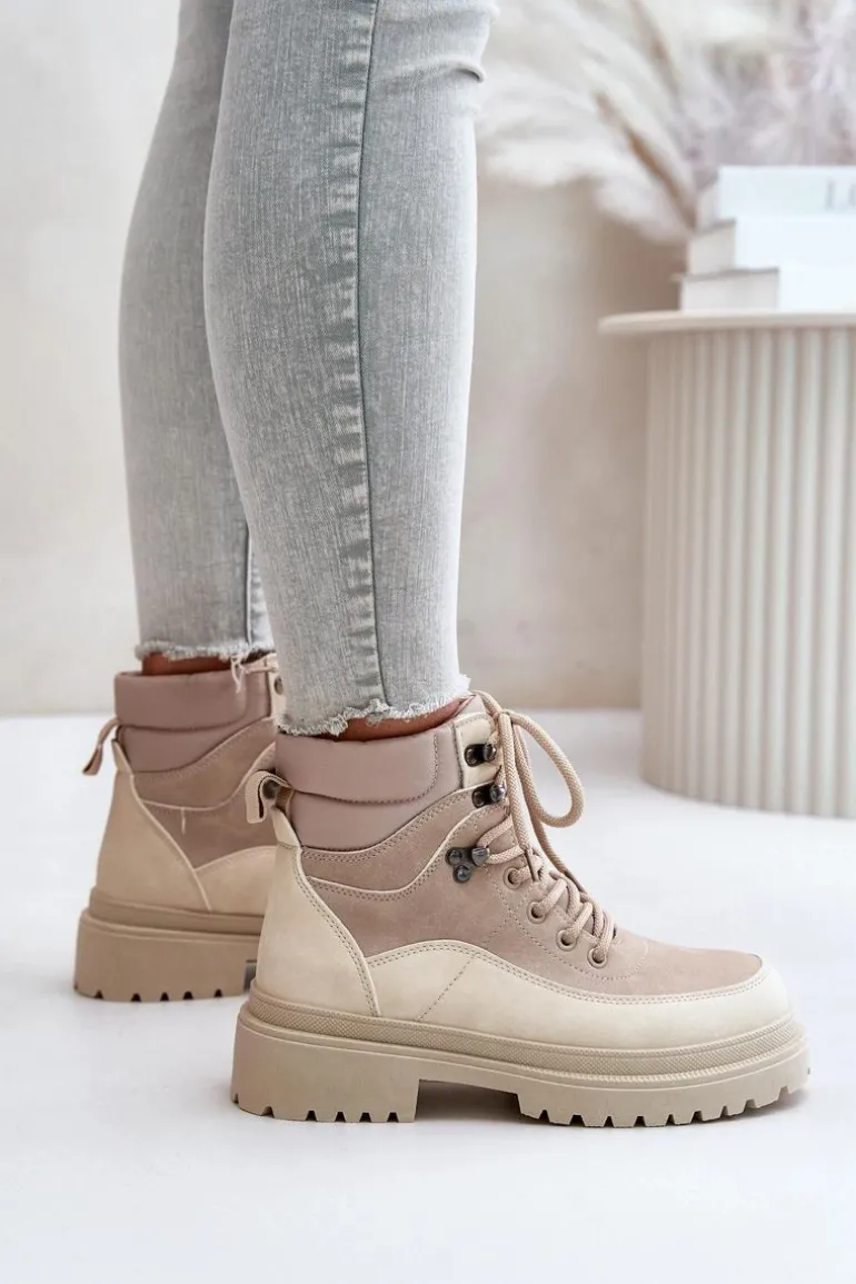 Botki Trapery Damskie Sznurowane Beżowe Rabaria