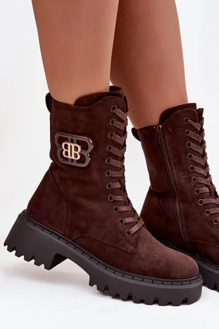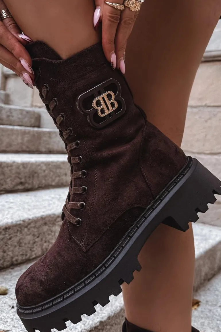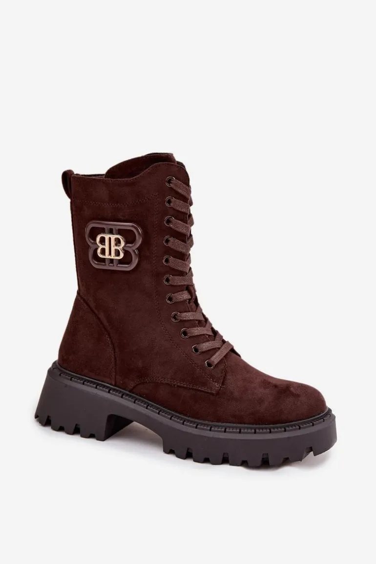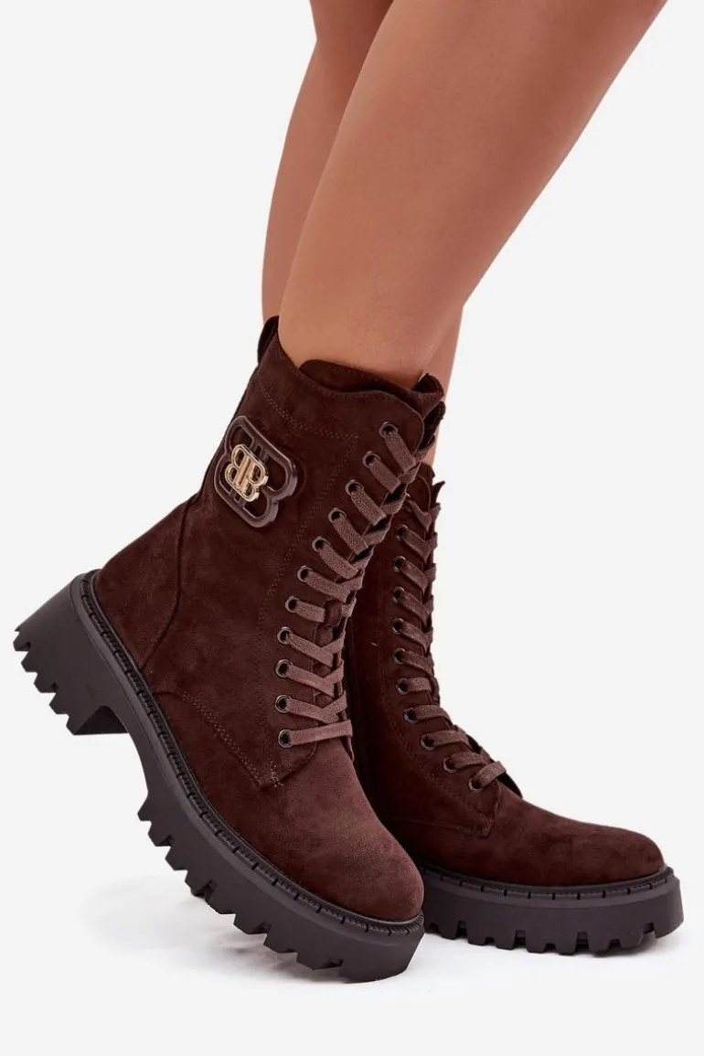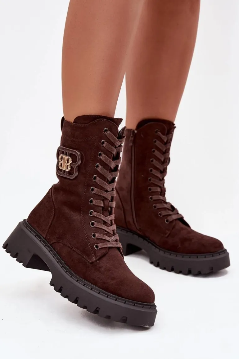 Botki Wokrery Damskie Z Ozdobnym Elementem Ocieplane Czekoladowe Kalindra