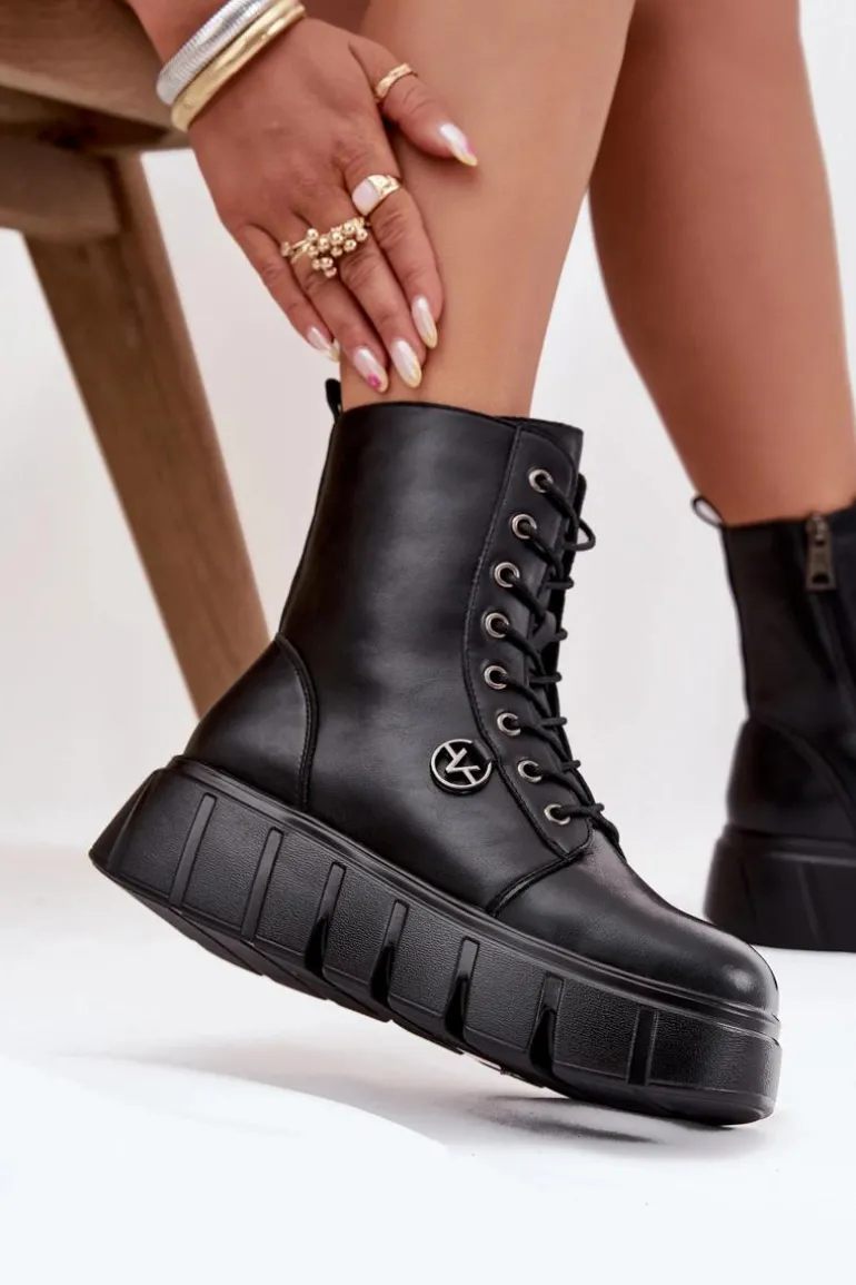 Botki damskie Vinceza z eko skóry to połączenie wygody i modnego wyglądu. Osadzone na masywnej platformie, dodają charakteru każdej stylizacji i zapewniają stabilny krok. Zaokrąglone noski podkreślają kobiecy, subtelny styl, a ocieplane wnętrze gwarantuje komfort w chłodniejsze dni. Model łączy w sobie funkcjonalność – sznurowanie pozwala na idealne dopasowanie, a zamek ułatwia szybkie zakładanie. Idealne do casualowych i bardziej wyrazistych zestawów. Przy wyborze rozmiaru prosimy kierować się tabelą rozmiarów.