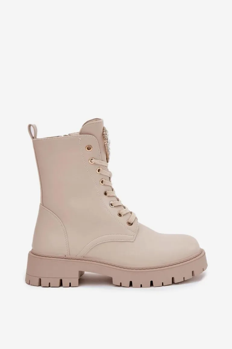 Botki damskie z eko skóry to urocza propozycja łącząca wygodę z modnym detalem. Model sznurowany i zapinany na zamek zapewnia łatwe zakładanie i idealne dopasowanie do stopy, a ozdobne serce z kryształkami na języku dodaje subtelnego, kobiecego blasku, świetnie uzupełniając codzienne stylizacje. Przy wyborze rozmiaru prosimy sugerować się tabelą rozmiarów.