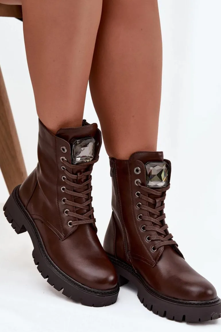 Botki workery damskie wykonane z eko skóry to praktyczna i stylowa propozycja na chłodniejsze dni. Model łączy w sobie funkcjonalność i modny wygląd – zapinany na zamek oraz sznurowany, co pozwala na idealne dopasowanie do stopy i wygodne zakładanie. Zaokrąglone noski nadają butom klasycznego charakteru, a ocieplane wnętrze z pianki pokrytej tkaniną zapewnia ciepło i komfort podczas noszenia. To uniwersalny model, który doskonale sprawdzi się w codziennych stylizacjach. Przy wyborze rozmiaru prosimy sugerować się tabelą rozmiarów.
