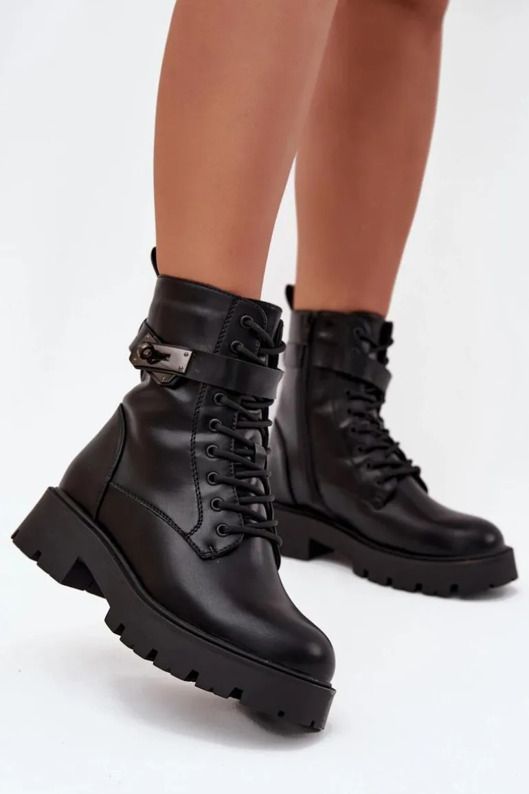 Botki workery damskie z eko zamszu to stylowa i funkcjonalna propozycja na zimowe dni. Ocieplane futerkiem, zapewniają ciepło i komfort nawet w mroźne dni. Sznurowane i zapinane na zamek, umożliwiają łatwe dopasowanie do stopy. Na cholewce znajduje się ozdobny pasek, który można odpiąć, co pozwala na zmianę stylu. Te botki świetnie sprawdzą się w codziennych zimowo-jesiennych stylizacjach. Przy wyborze rozmiaru prosimy sugerować się tabelą rozmiarów.