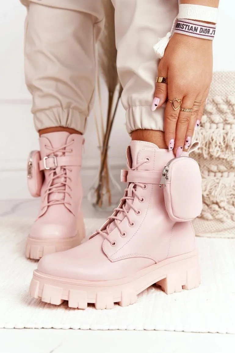 Botki Workery Na Platformie z Nerką Różowe Saturday