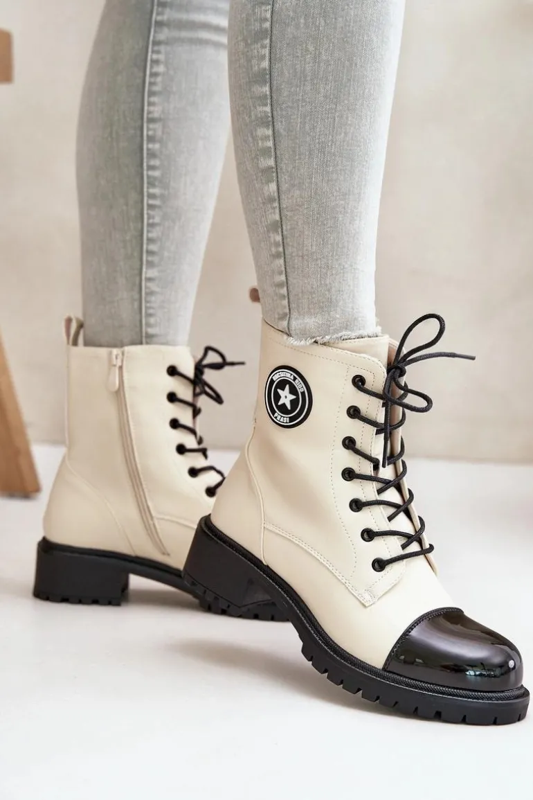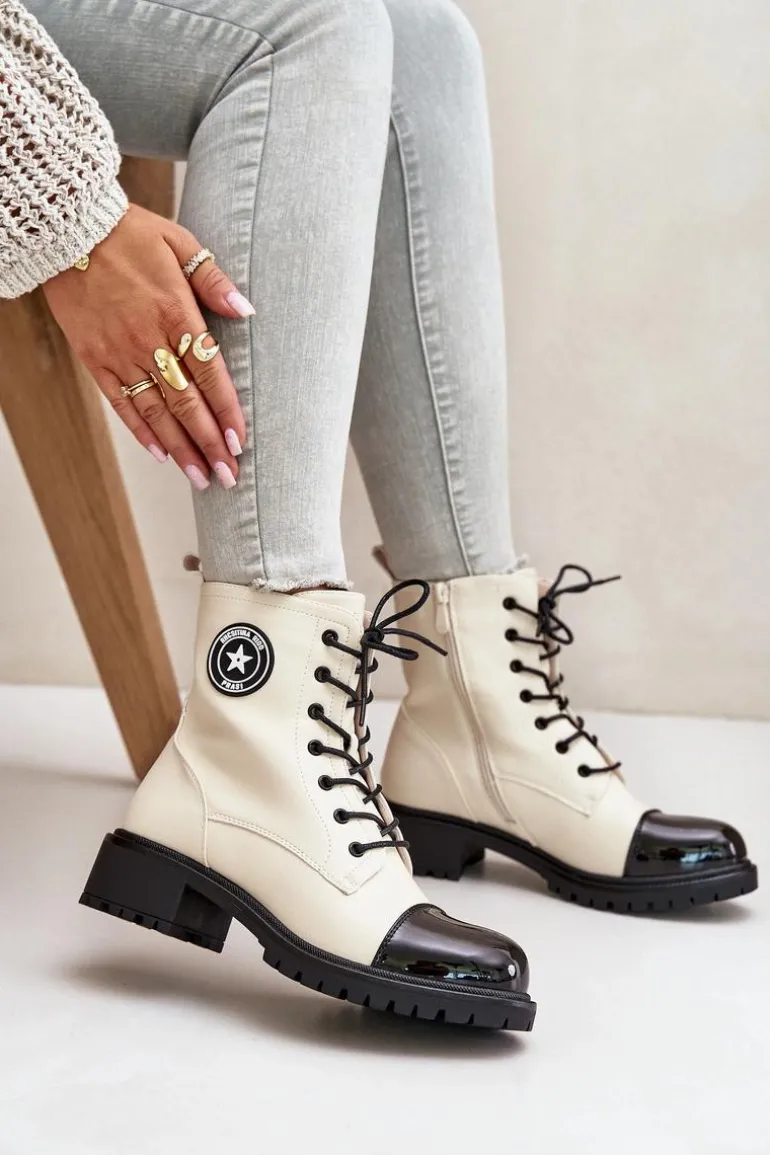 Damskie botki workery wykonane z ekologicznej skóry, ocieplane kocem obuwniczym, idealnie sprawdzą się w chłodniejsze dni. Model zapinany na zamek oraz sznurowany, co zapewnia doskonałe dopasowanie do stopy i wygodę noszenia. Klasyczny design w połączeniu z funkcjonalnością czyni je stylowym wyborem na co dzień. Przy wyborze rozmiaru prosimy sugerować się tabelą rozmiarów.