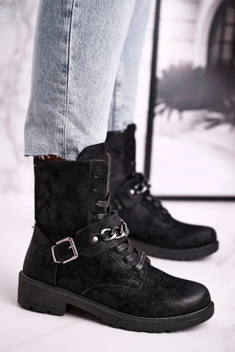 Botki Workery Z Łańcuchem Zamszowe Czarne Augusta