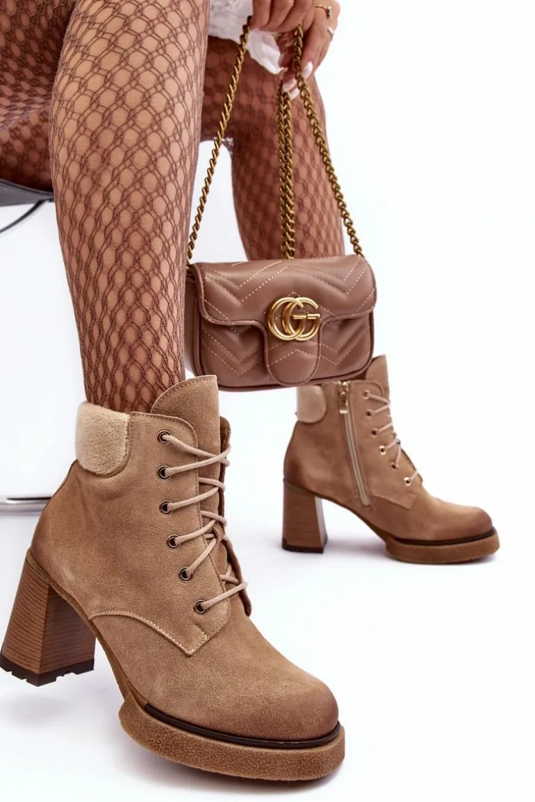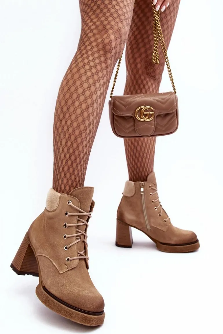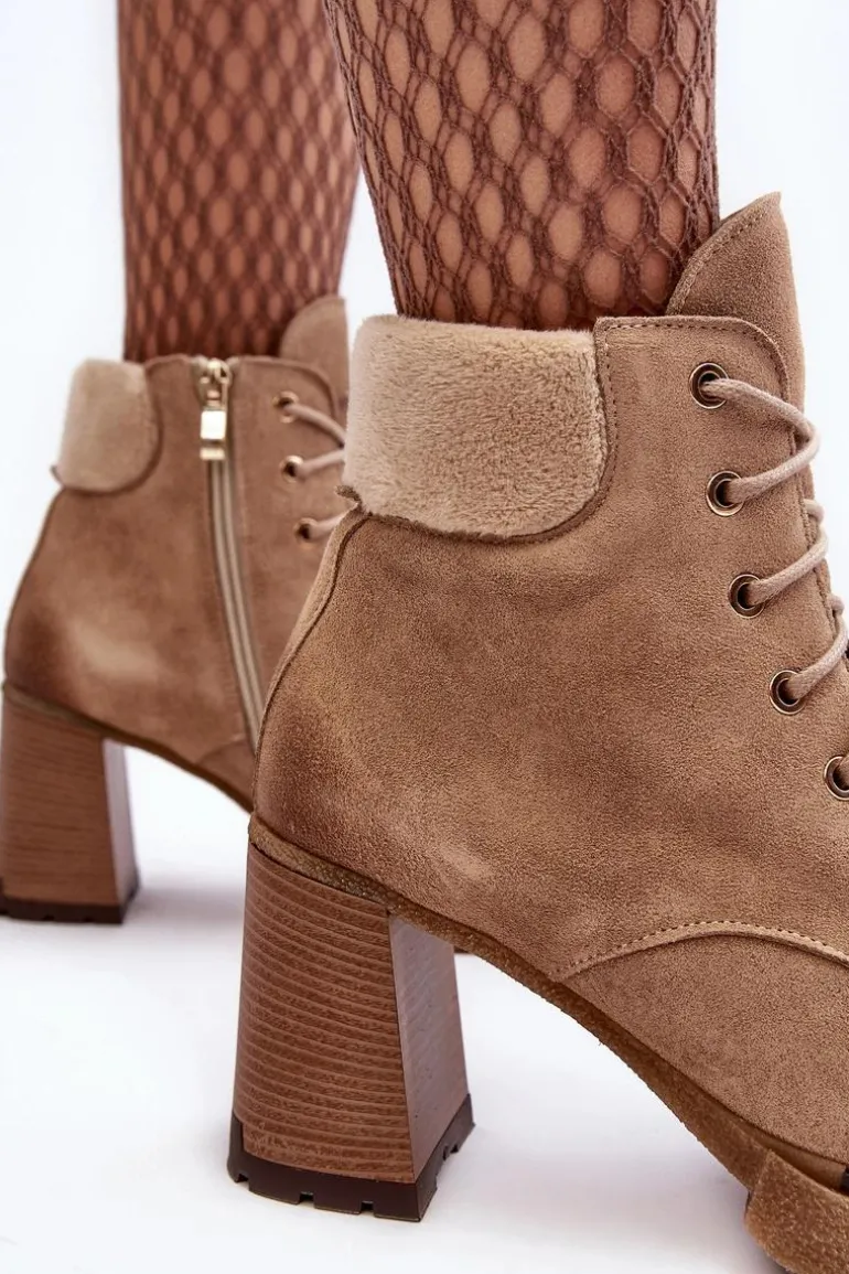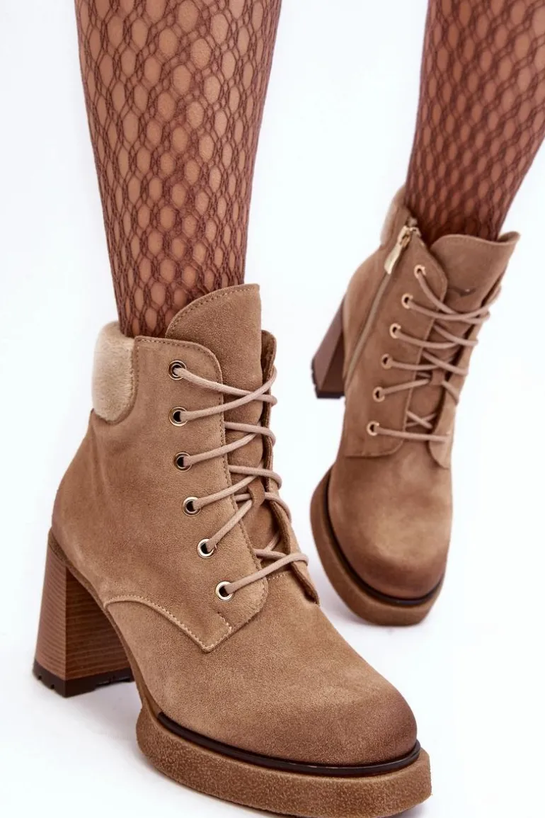 Botki Zamszowe Sznurowane Na Słupku Beżowe Lemar Flomes
