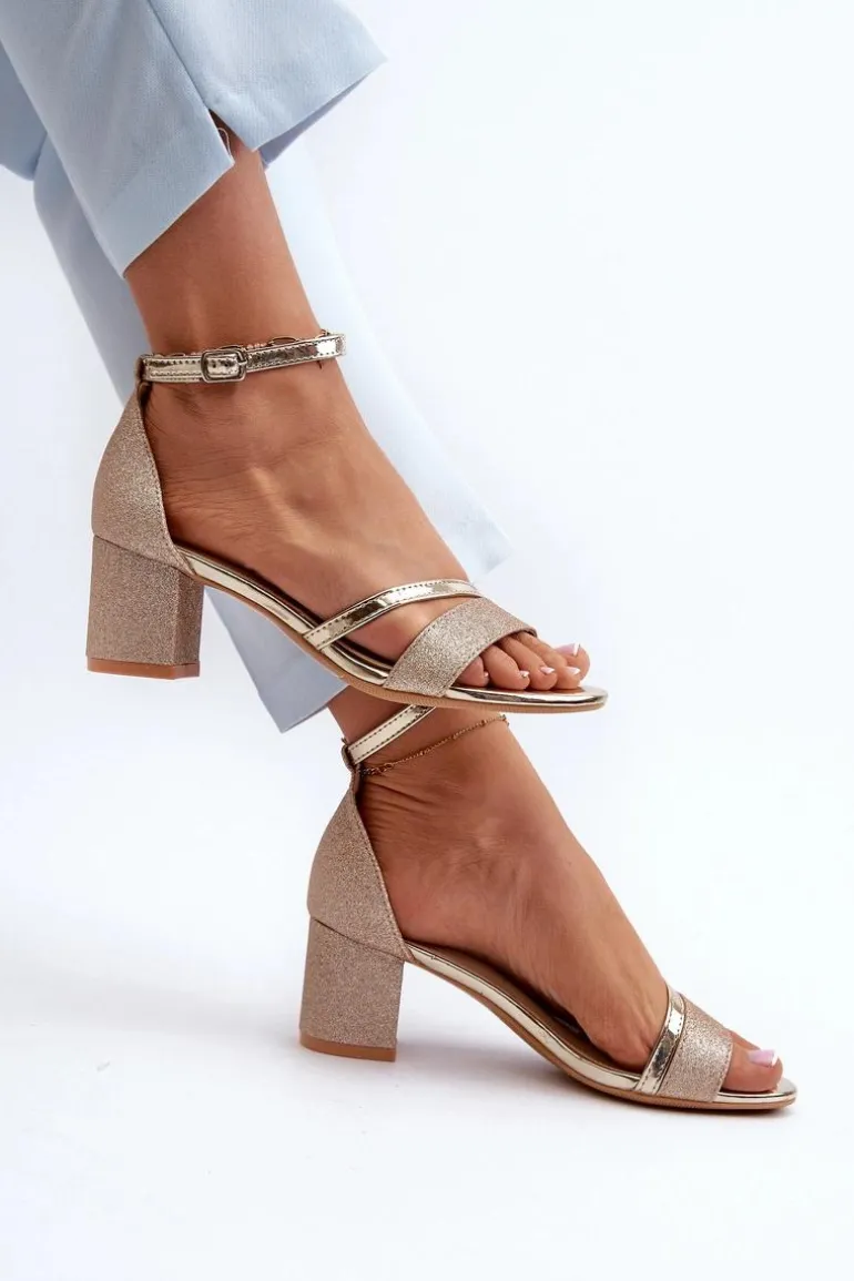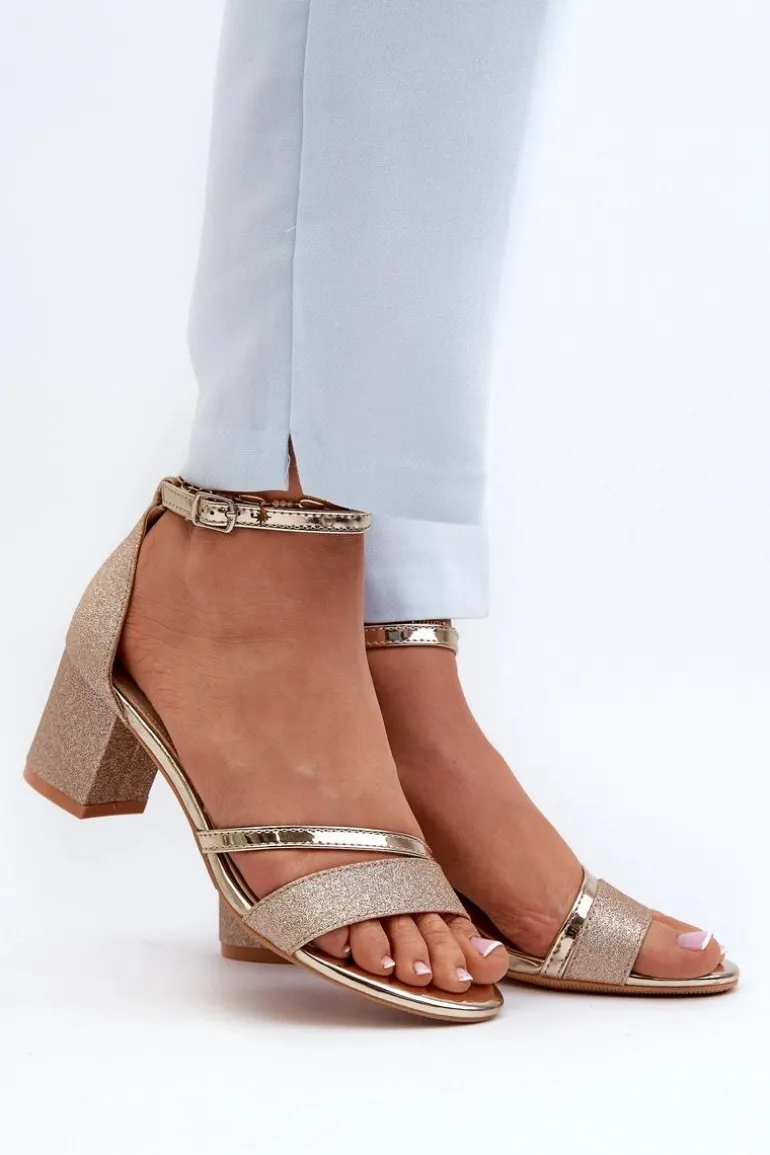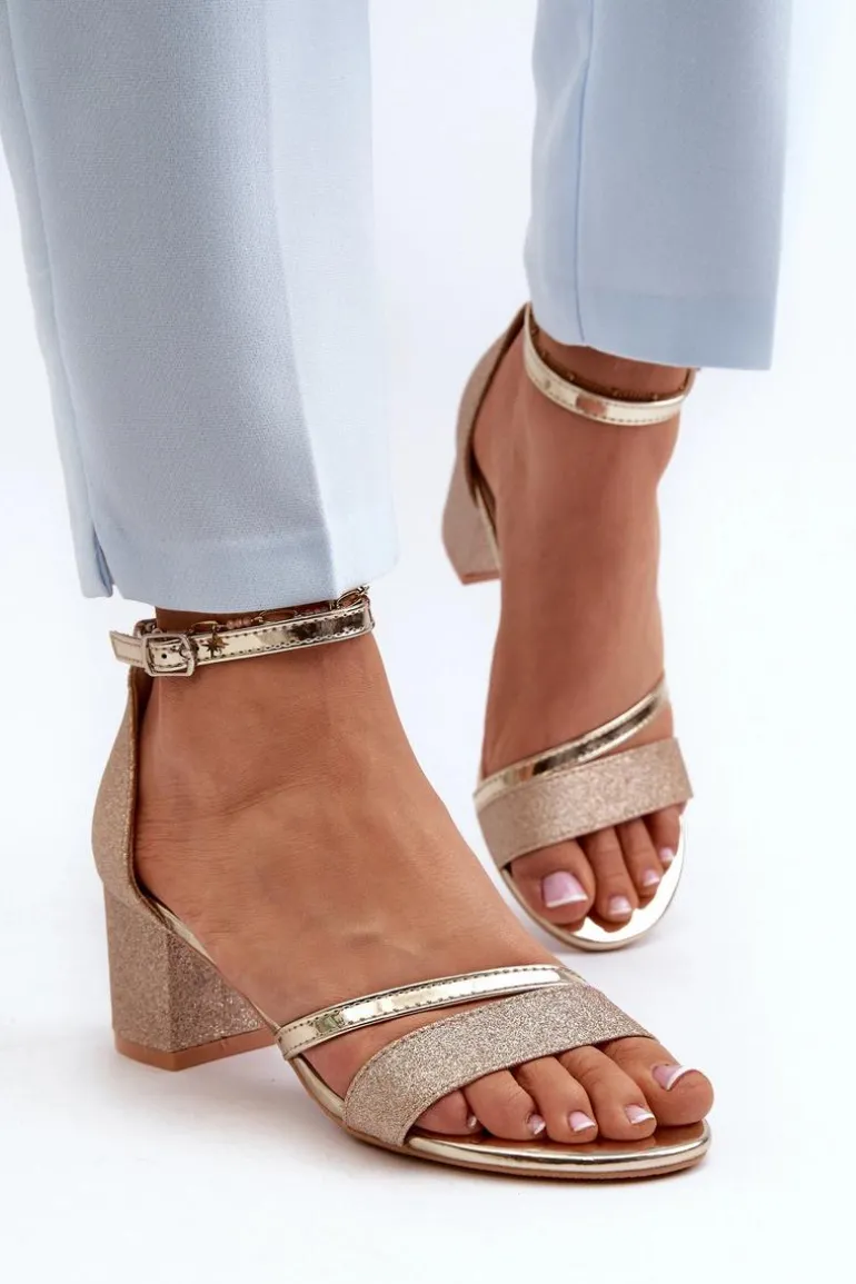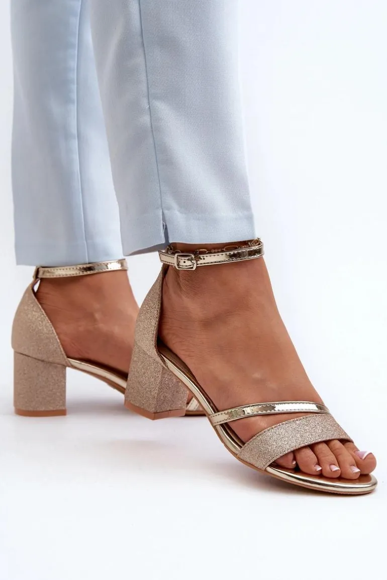 Piękne sandały na obcasie w postaci niskiego słupka marki Vinceza. Ozdobione brokatem. Miękka wkładka z eko skóry zapewni komfort podczas użytkowania. Zapinane na regulowany pasek ze sprzączką. Model ten będzie idealny na wesela, uroczystości rodzinne i wieczorne wyjścia! Przy wyborze rozmiaru prosimy sugerować się tabelą rozmiarów.