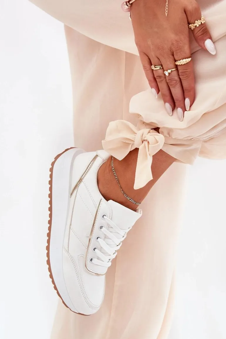 Klasyczne buty sportowe damskie wykonane z eko skóry. Osadzone na platformie, zapewniają komfort i stabilność przy każdym kroku, dodając lekkości sylwetce. Idealne na co dzień, te buty będą doskonałym wyborem do casualowych stylizacji, łącząc wygodę z modnym wyglądem. Przy wyborze rozmiaru prosimy kierować tabelą rozmiarów.