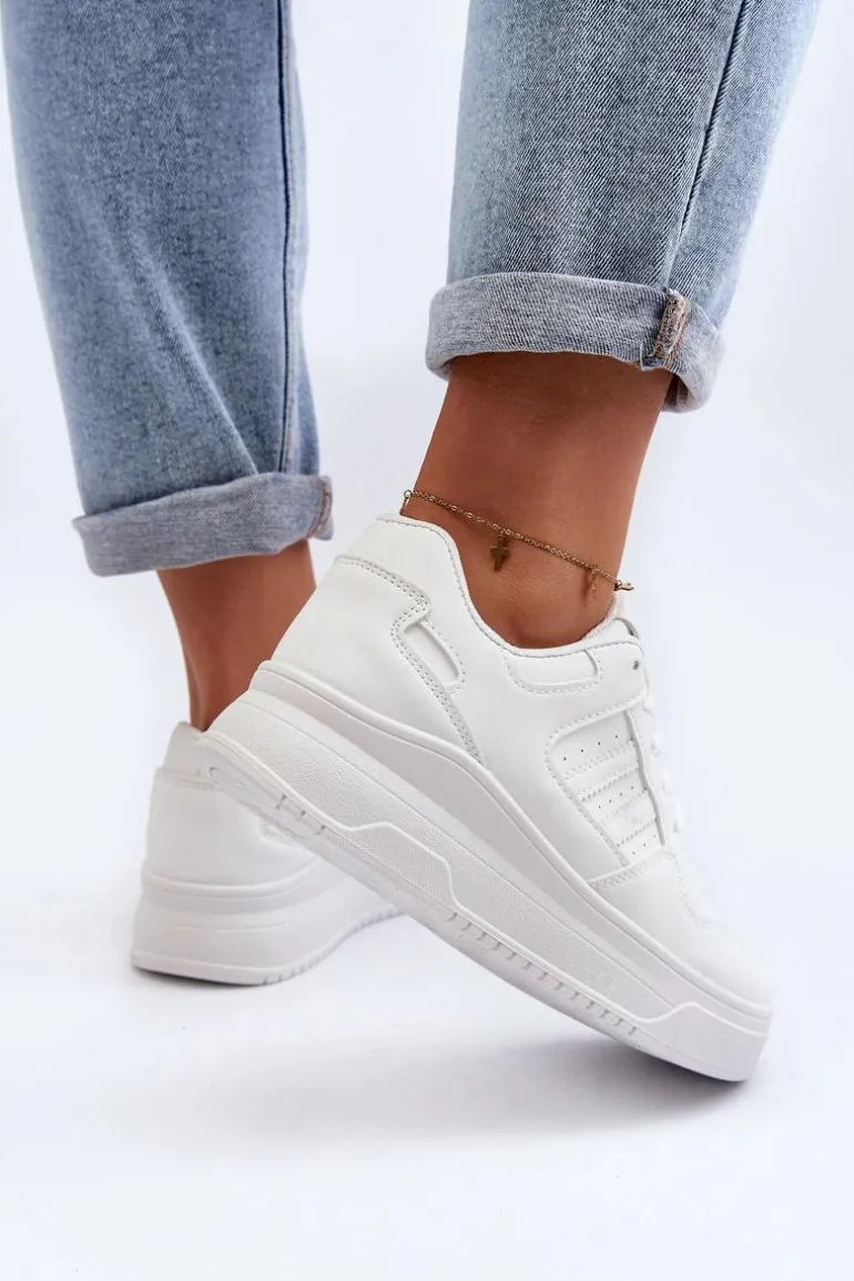 Sneakersy damskie wykonane z wysokiej jakości eko skóry. Osadzone na platformie. Noski zaokrąglone. Miękka, piankowa wkładka zapewni wygodę podczas noszenia. Model ten idealnie sprawdzi się do każdej stylizacji ze spodniami. Koniecznie powinnaś je mieć! Przy wyborze rozmiaru prosimy kierować się tabelą rozmiarów.