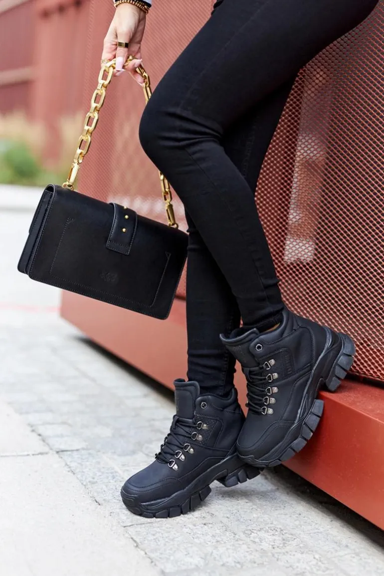 Damskie buty zostały wykonane z eko skóry. Bardzo masywne, na wysokiej platformie. Posiadają wiązanie ułatwiające dopasowanie obuwia do własnych wymagań. Buty są ocieplane kocem obuwniczym. W Twojej szafie nie powinno zabraknąć takich butów! Koniecznie sprawdź całą naszą kolekcję marki Big Star! Przy wyborze rozmiaru prosimy sugerować się tabelą rozmiarów.