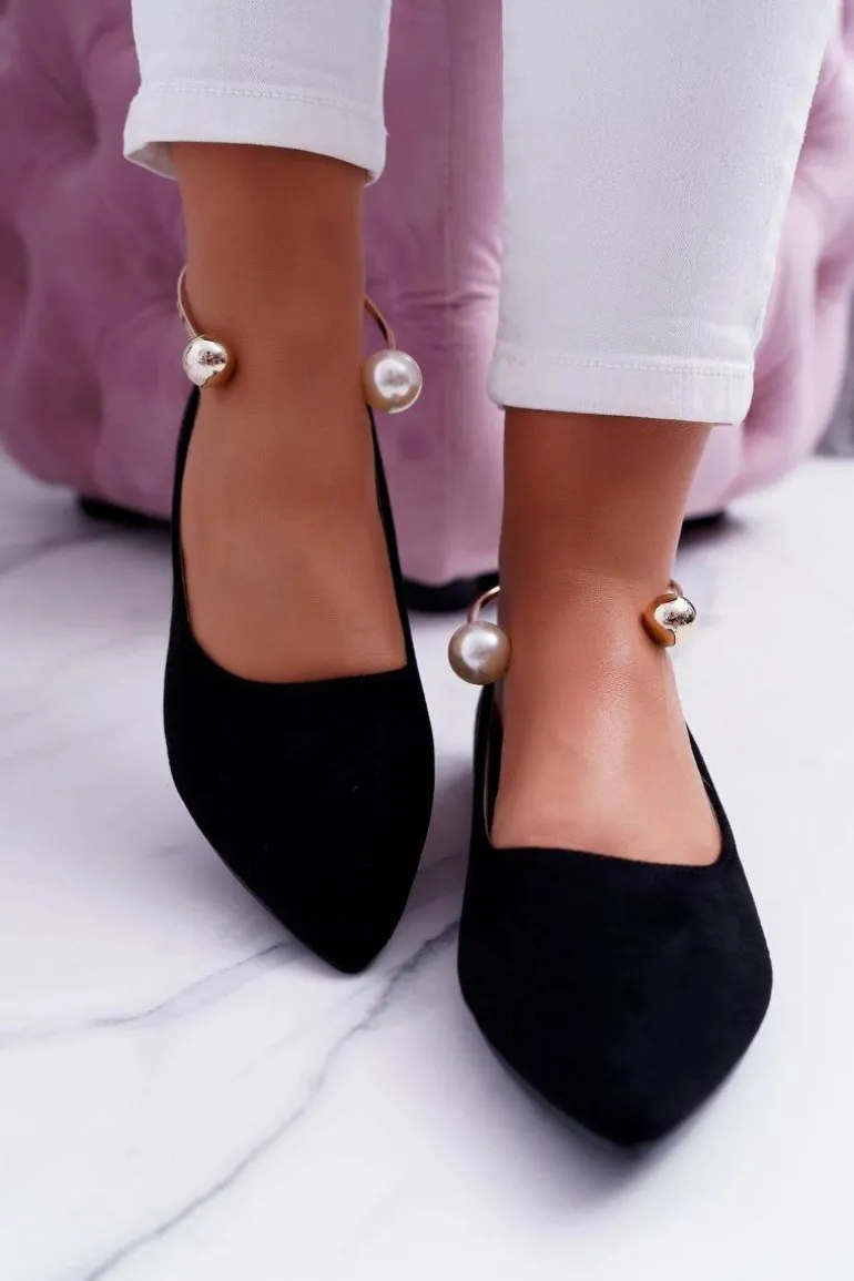 Czarne Balerinki Z Bransoletką W Szpic Mami