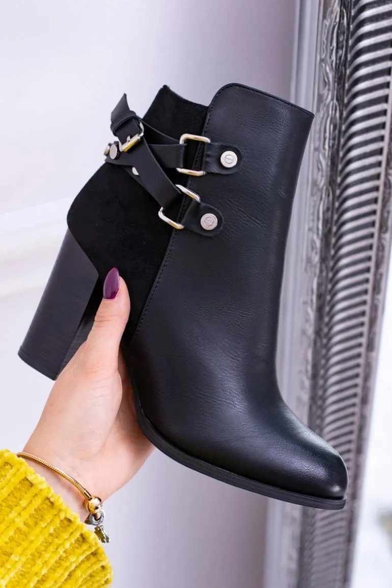 Czarne Botki Na Słupku Z Paskami Lico Zamsz Nevada