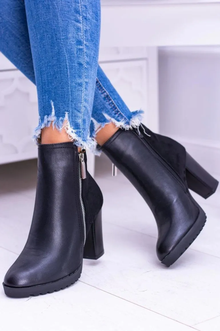 Czarne Botki Na Słupku z Zamkiem Ortega