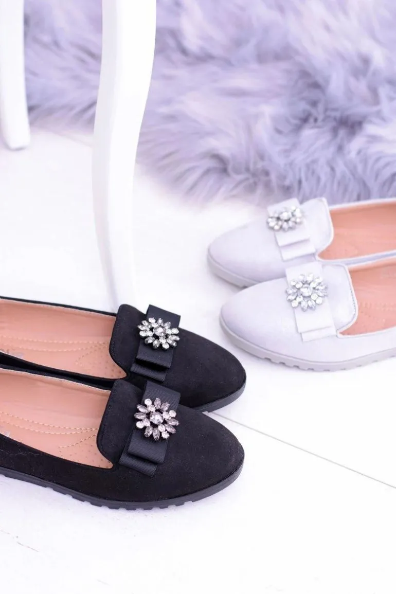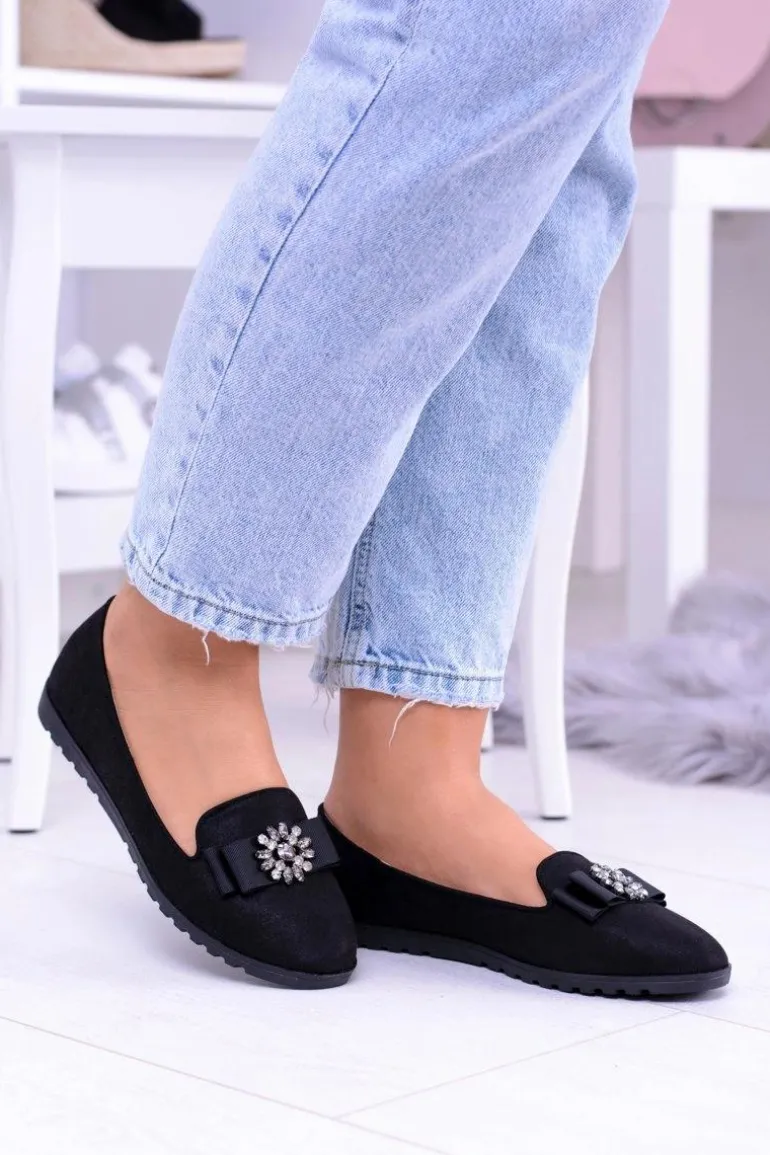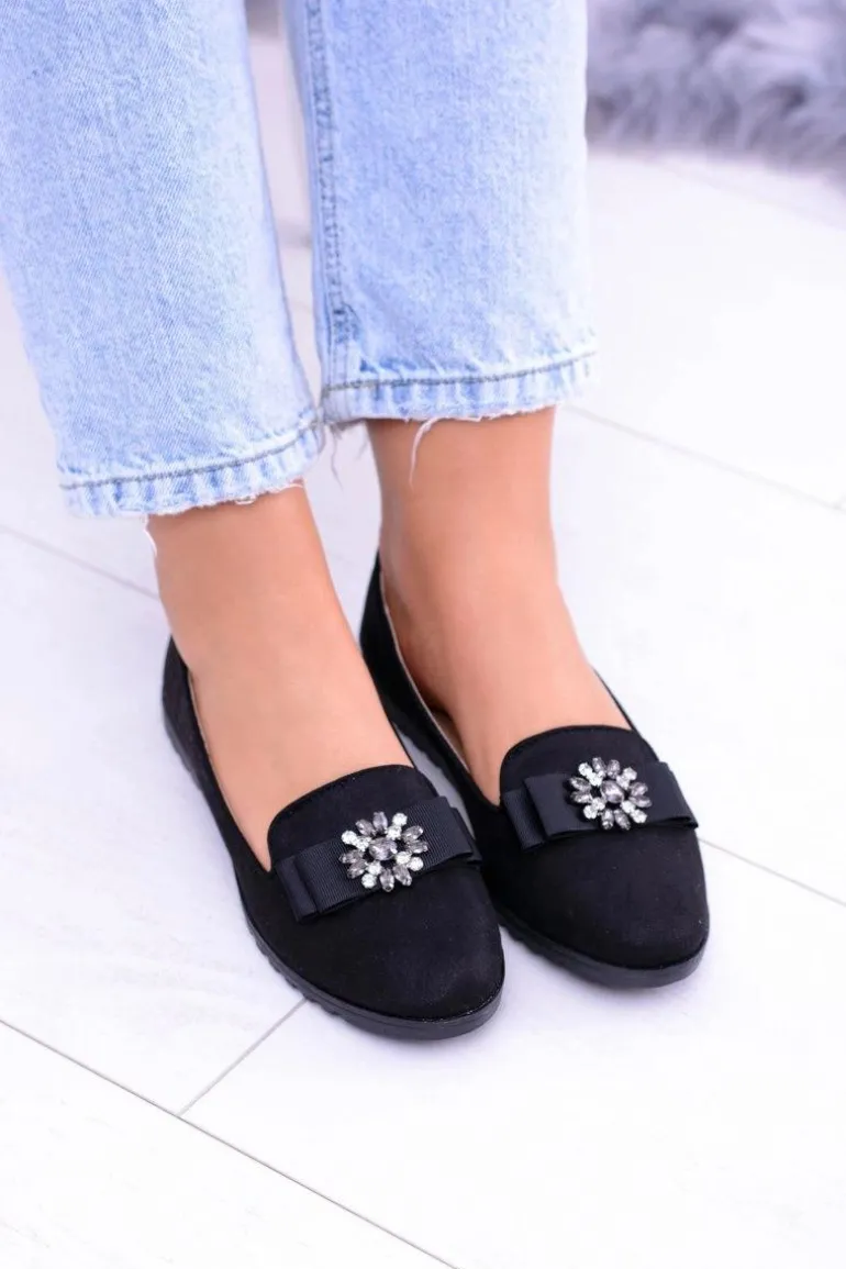 Czarne Damskie Baleriny Lordsy Cyrkonie Rumi