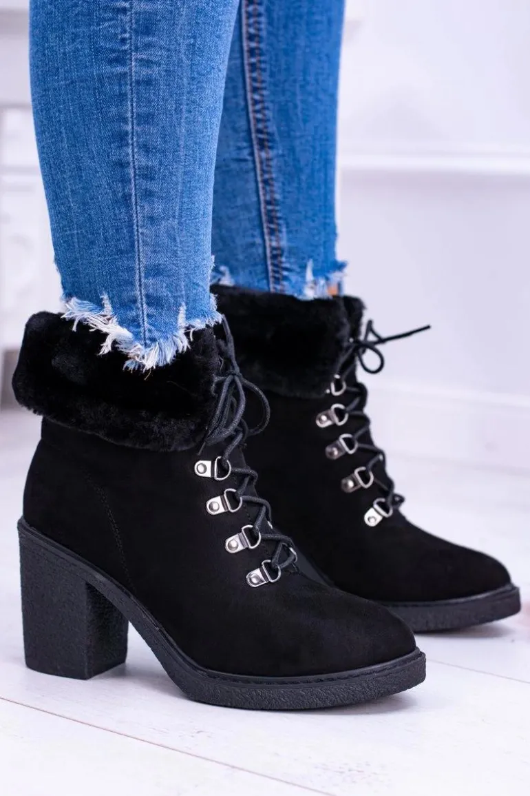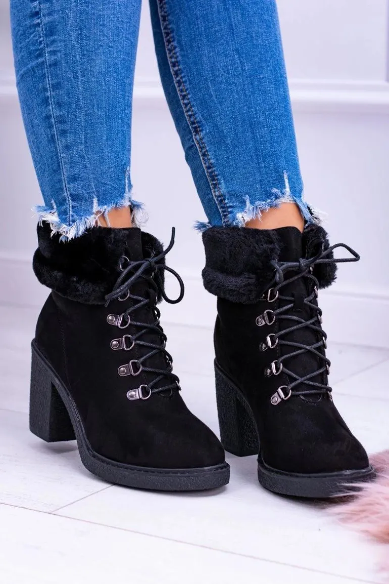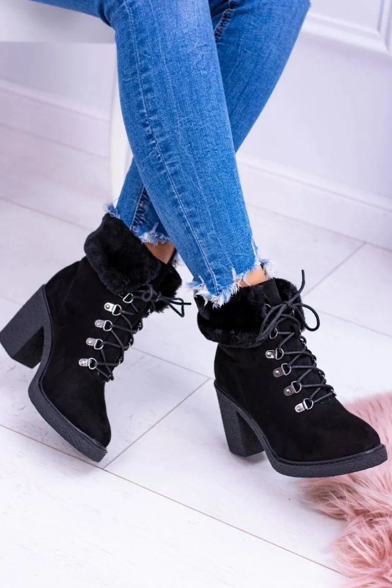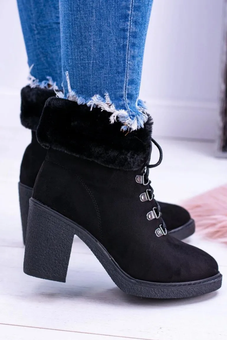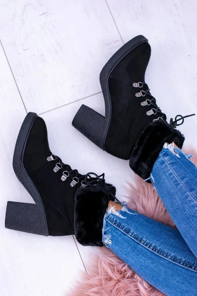 Czarne Damskie Botki Z Futerkiem Na Słupku Influence